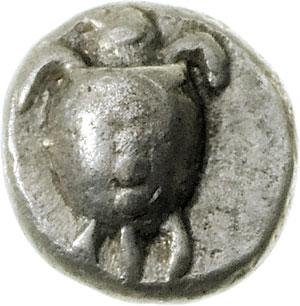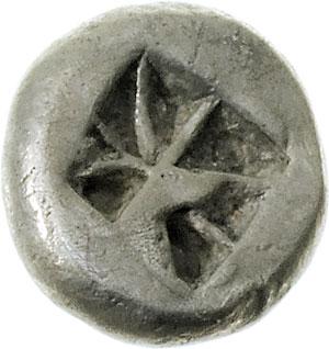 Mondo Greco. Grecia Continentale. Aigina. Obolo, 510-490 a.C. D/ Tartaruga marina. R/ Quadrato incuso diviso in otto triangoli, cinque dei quali incusi. BMC 11.73. AG. g. 0.95 mm. 7.50 SPL.