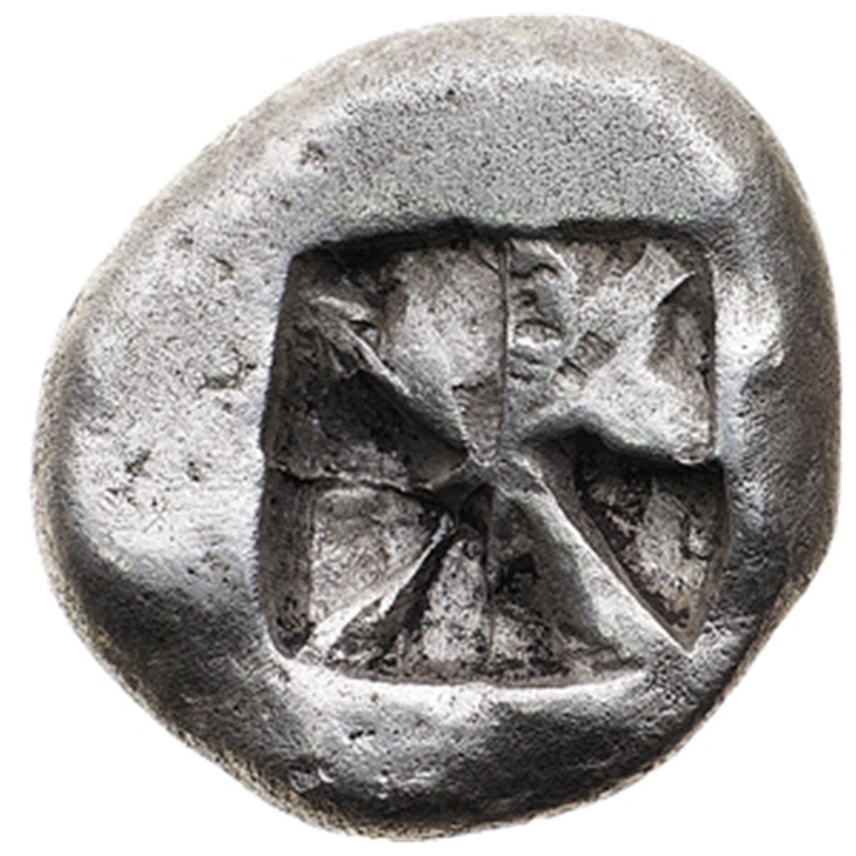 Mondo Greco. Grecia Continentale. Aigina. Statere, 510-490 a.C. D/ Tartaruga marina. R/ Quadrato incuso diviso in otto triangoli piani e incusi. Cfr. BMC 11,3. AG. g. 12.20 mm. 20.00 R. Bel BB+/qSPL.