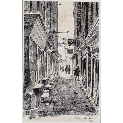 7615 Aileen Mary Elliott (1896-) Woodblock on Tissue Street Scene 1901 Signed lower right 7 1/2" x 5"