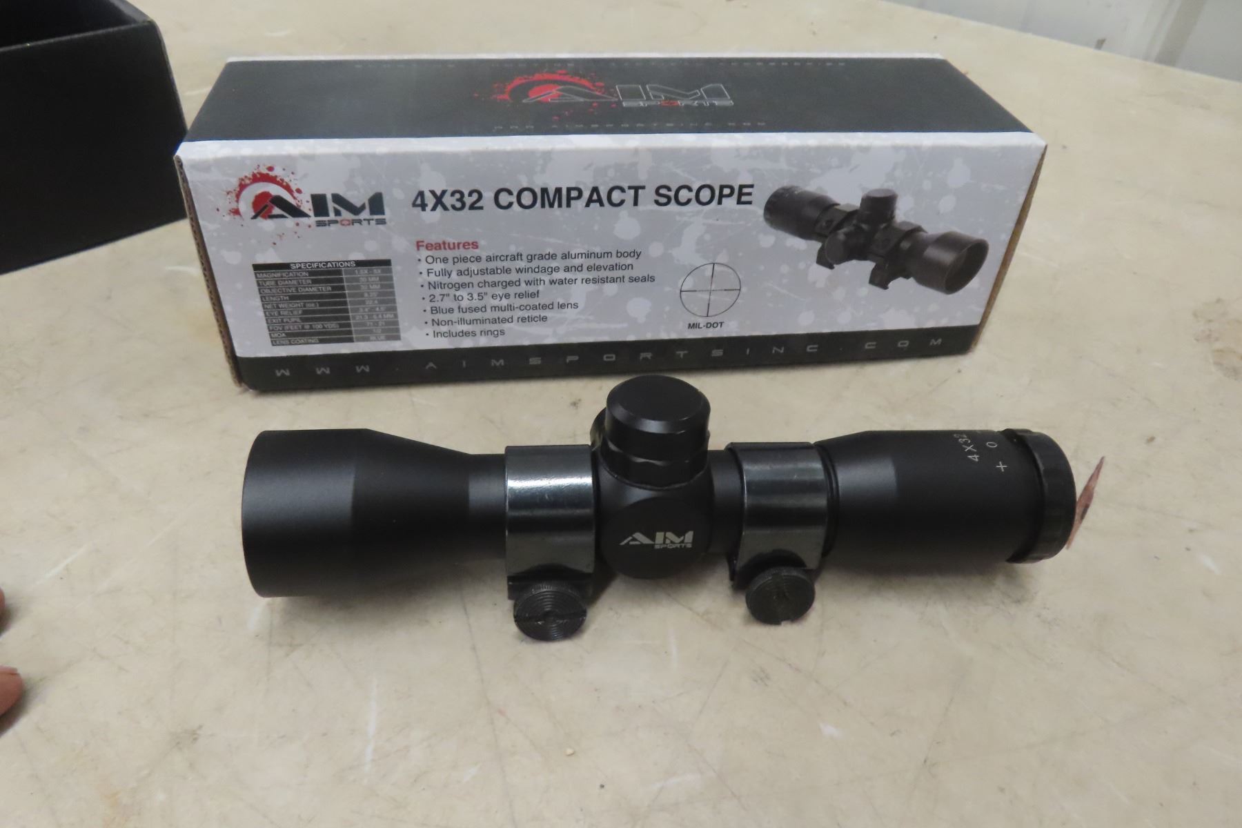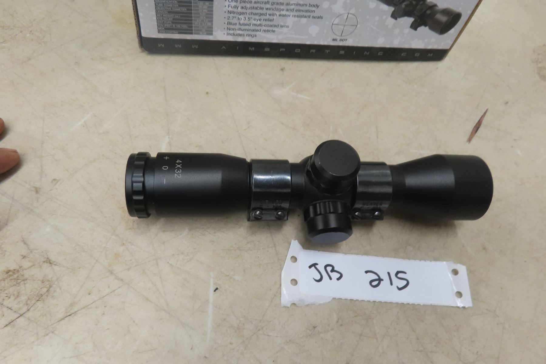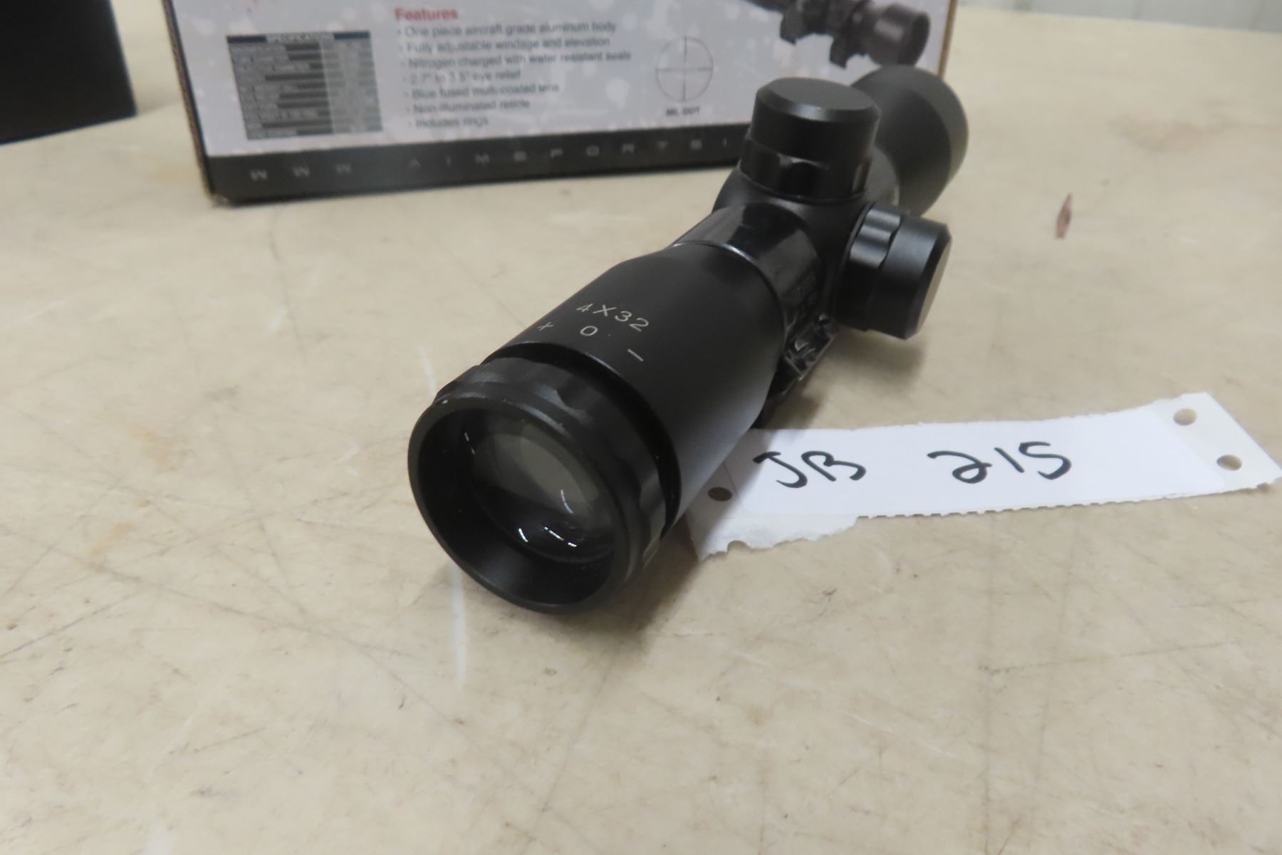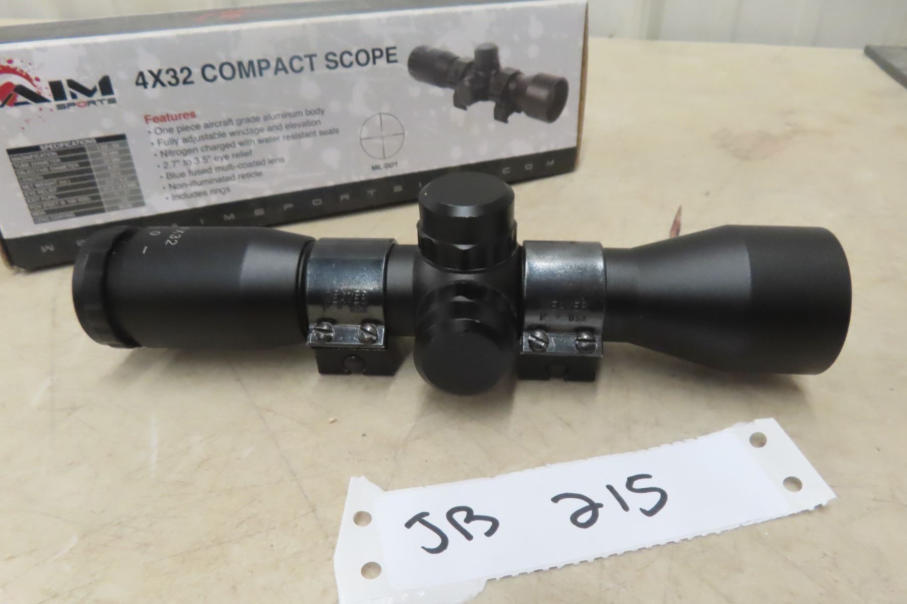 Aim 4 x 32 Compact Rifle Scope MUST HAVE A VALID PAL TO BID. WE CANNOT SHIP AMMO/PRIMERS. IF YOU REQUIRE SHIPPING AND BID ON AMMO, YOU WILL BE RESPONSIBLE TO PAY FOR IT AND RESELL IT UNDER YOUR CONSIGNMENT IN THE NEXT GUN AUCTION.