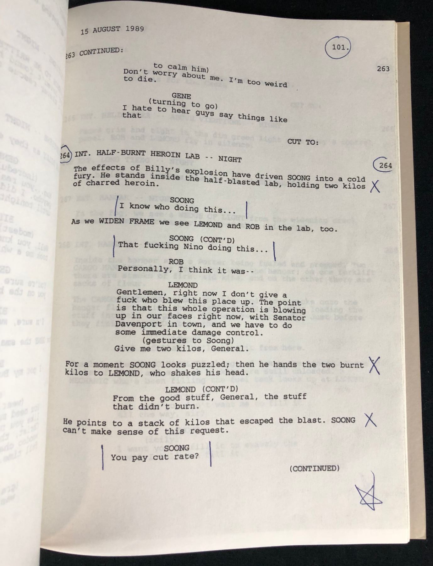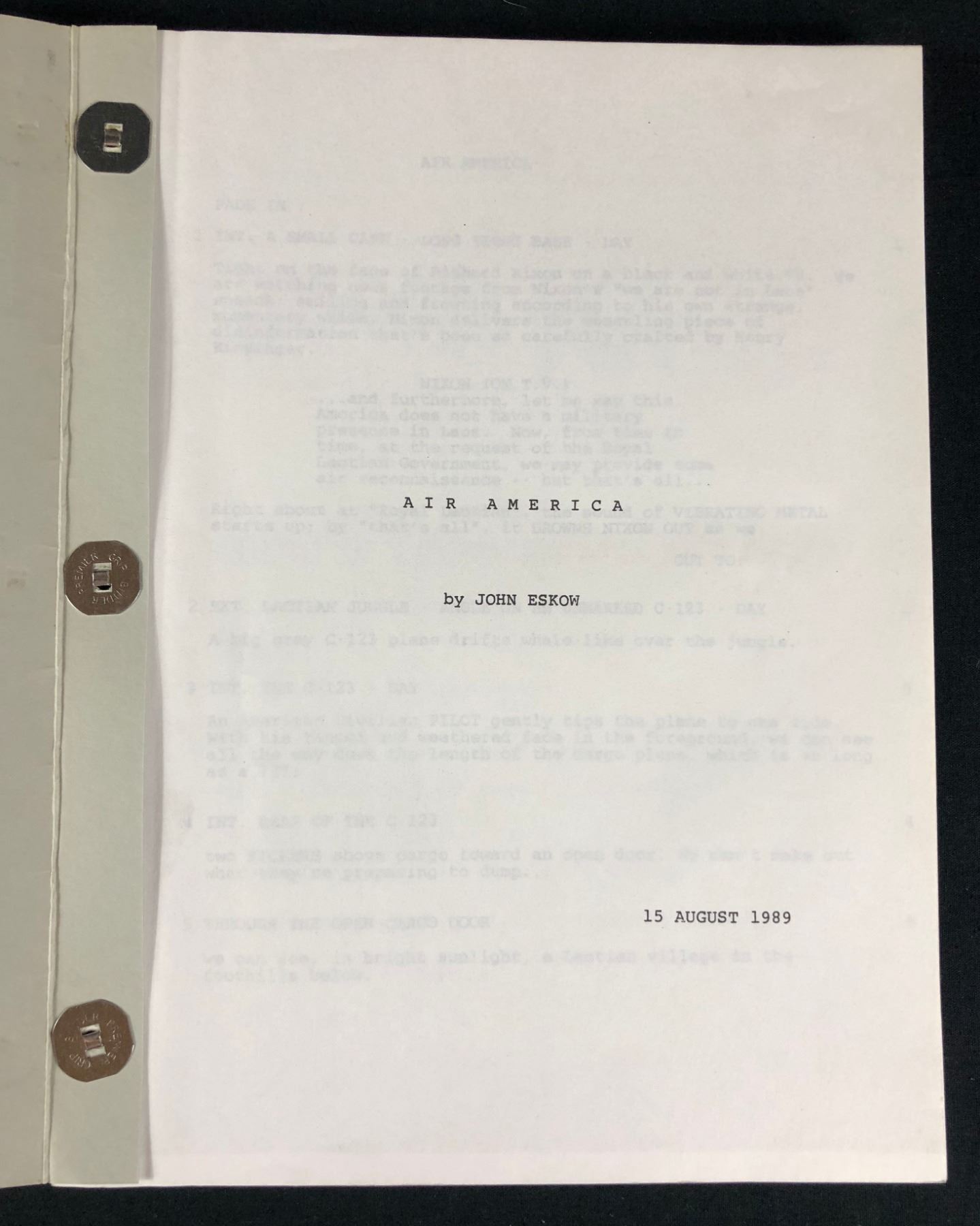Original production used script credited and annotated by "Burt Kwouk", who played General Lu Soong in the action comedy film "Air America" (1990), where a young pilot finds himself recruited unwittingly into a covert and corrupt C.I.A. airlift organization operating in Vietnam War-era Laos. Starring Mel Gibson and Robert Downey Jr.