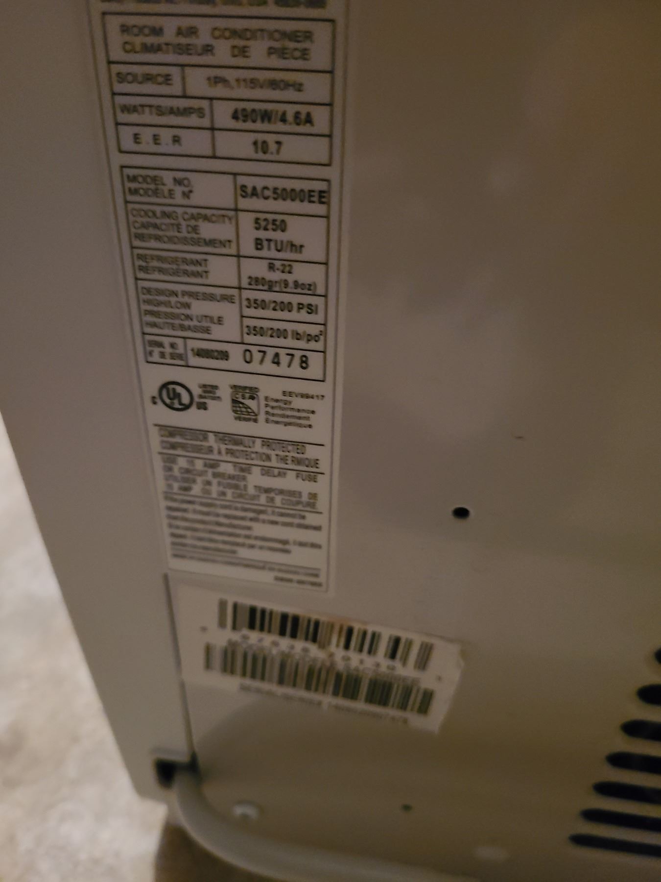 Window mounter air conditioner, condition unknown. Pickup 9 am.