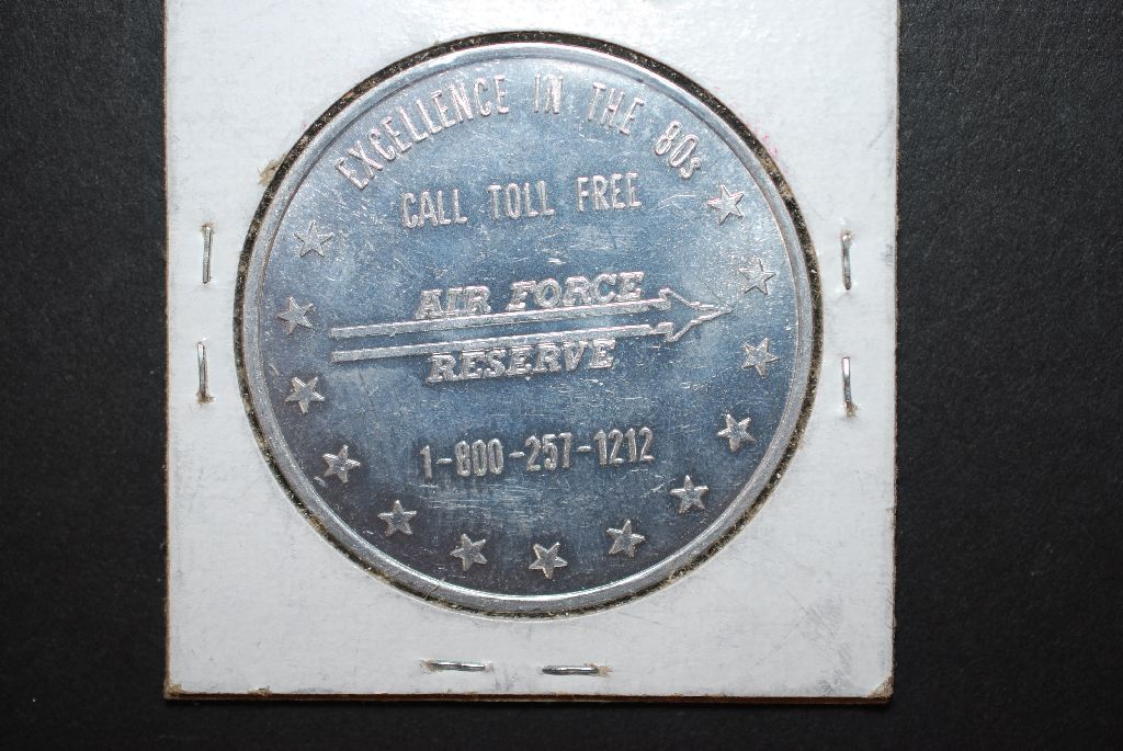 Air Force Reserve Recruiting Service Token; Excellence In The 80s; Call Toll Free 1-800-257-1212; EST. $5-10