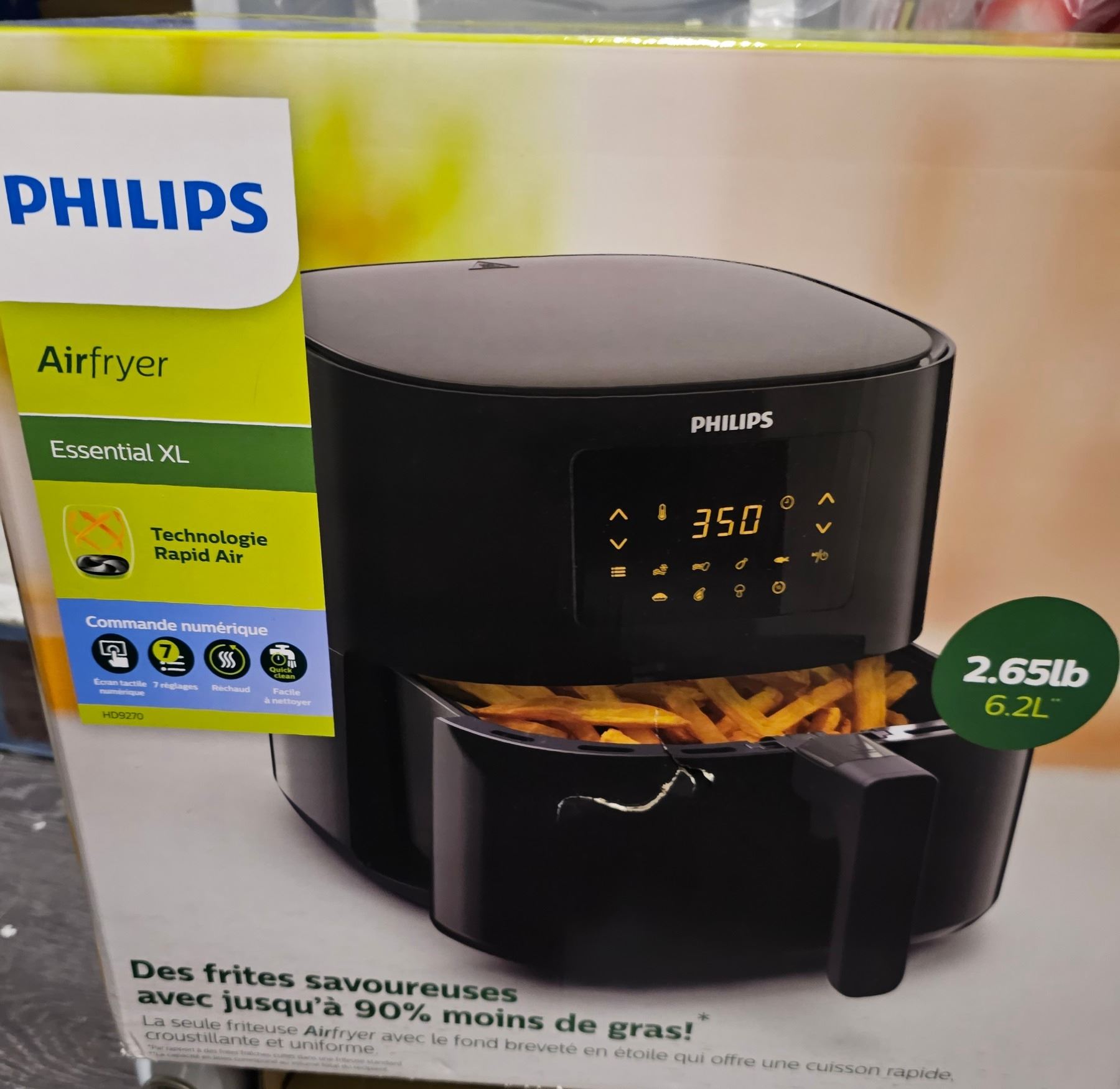 Philips Essential Airfryer XL 2.65lb/6.2L Capacity Digital Airfryer with Rapid Air Technology, Easy Clean Basket, Black- HD9270/91