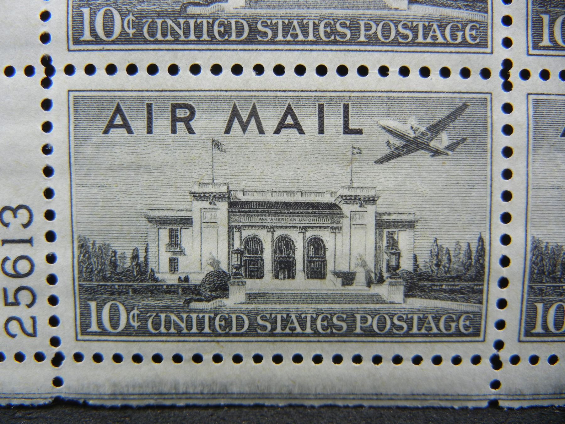 Air Mail Vintage Unused Plate Block of 10 Cent Stamps