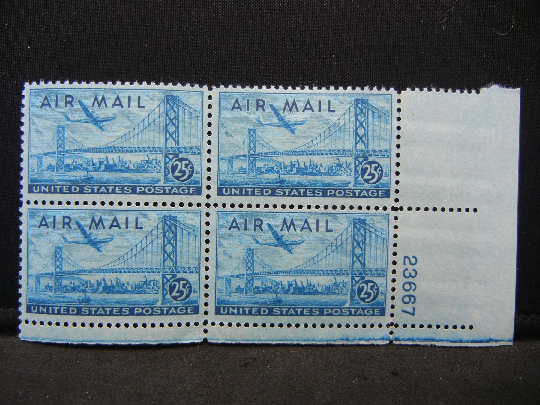 Air Mail Vintage Unused Plate Block of 25 Cent Stamps