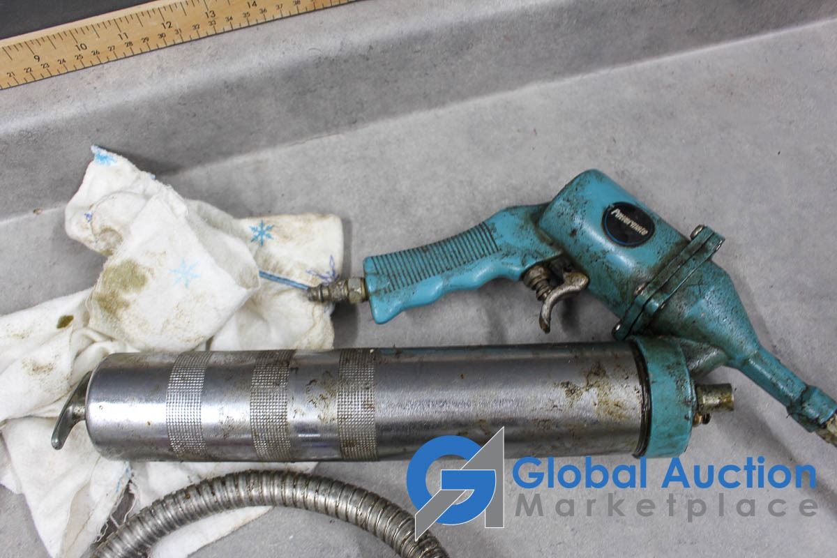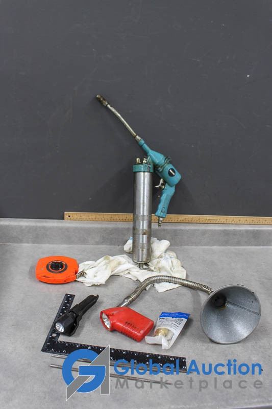 Air Power Grease Gun, Flexible Funnel, Tape Measure, Files