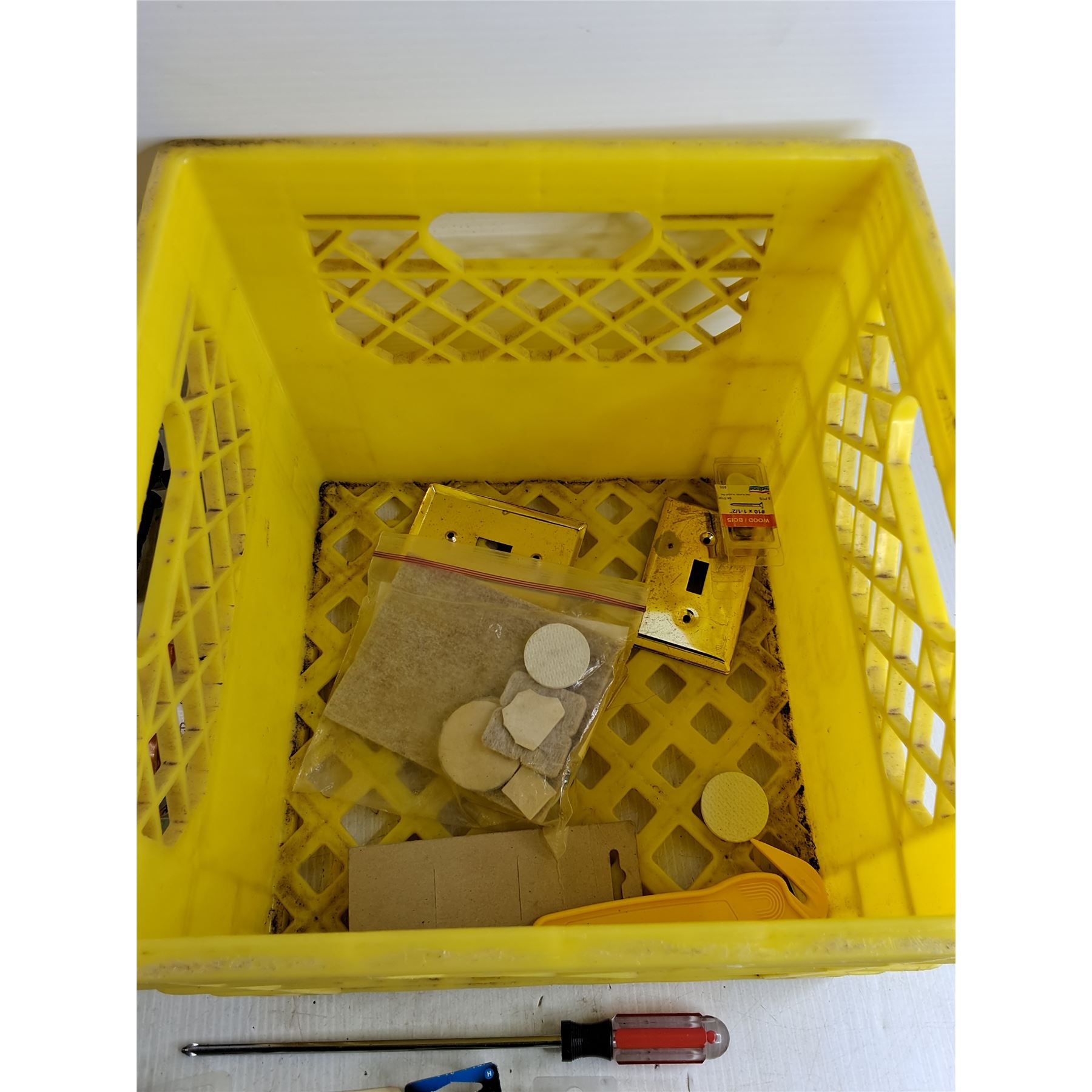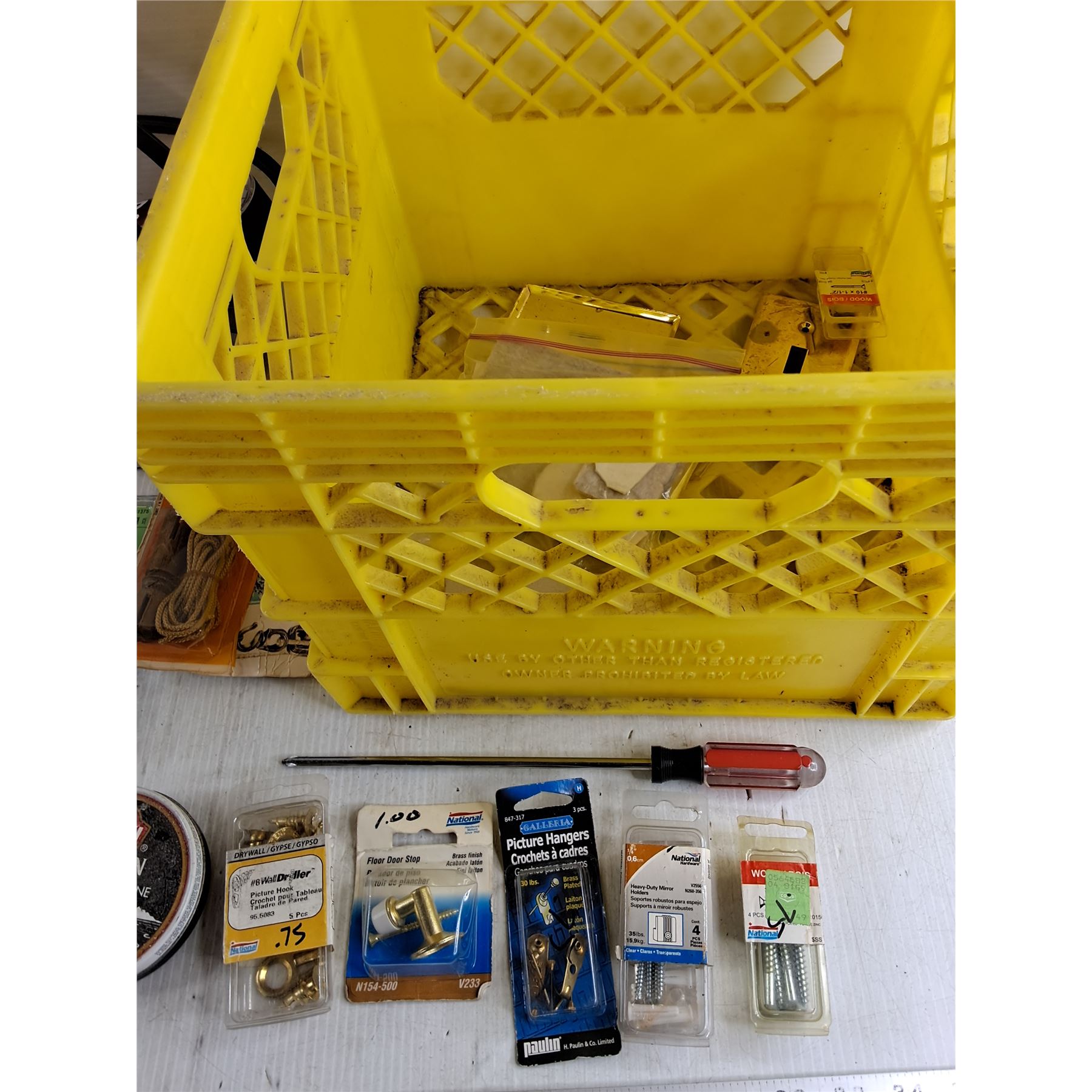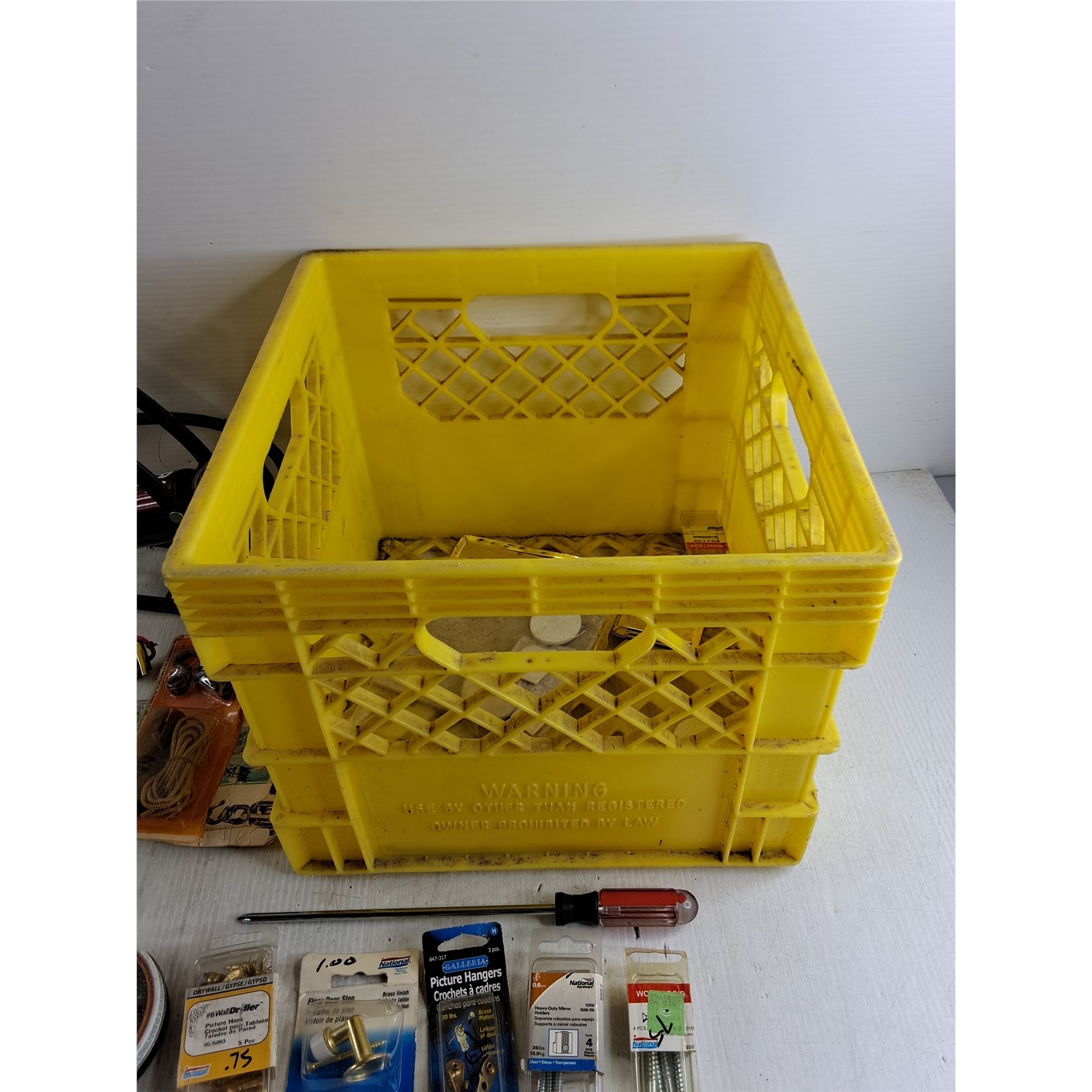 Air Pump, Stanley FatMax, Milk Crate, Picture Hangers, Gate Latch, Mirror Holders, Misc