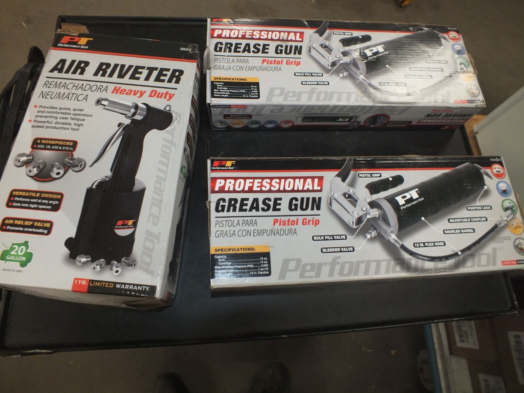 Air Riveter & 2 Grease Guns, all items are store returns, all un tested...