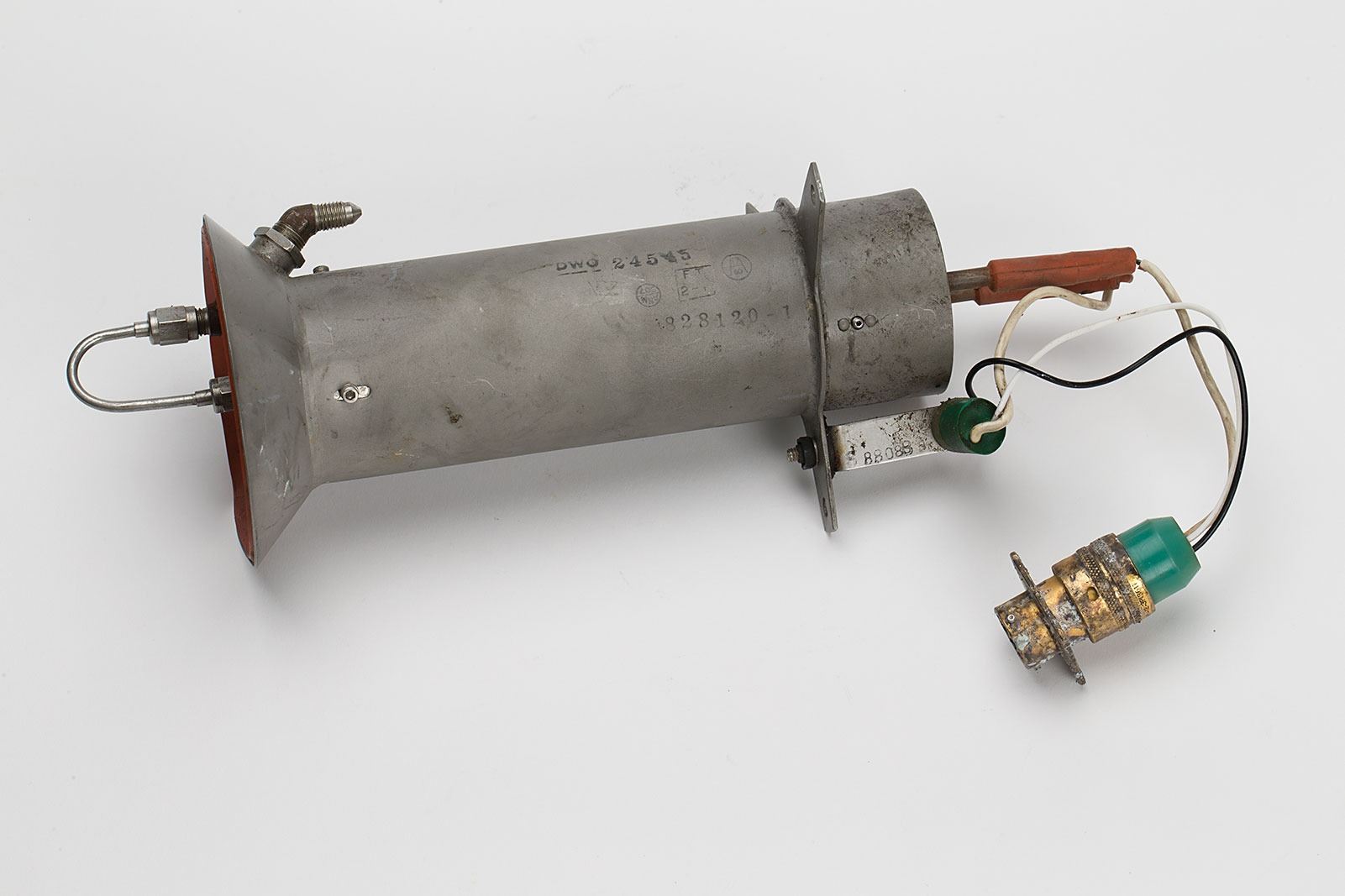 Apollo Command Module Environmental Control System (ECS) Component, measuring 12? long and 4? in diameter, marked on the side, "DWO 24545, 828120-1." The component retains its wiring harness which terminates in a male connector. In fine condition.