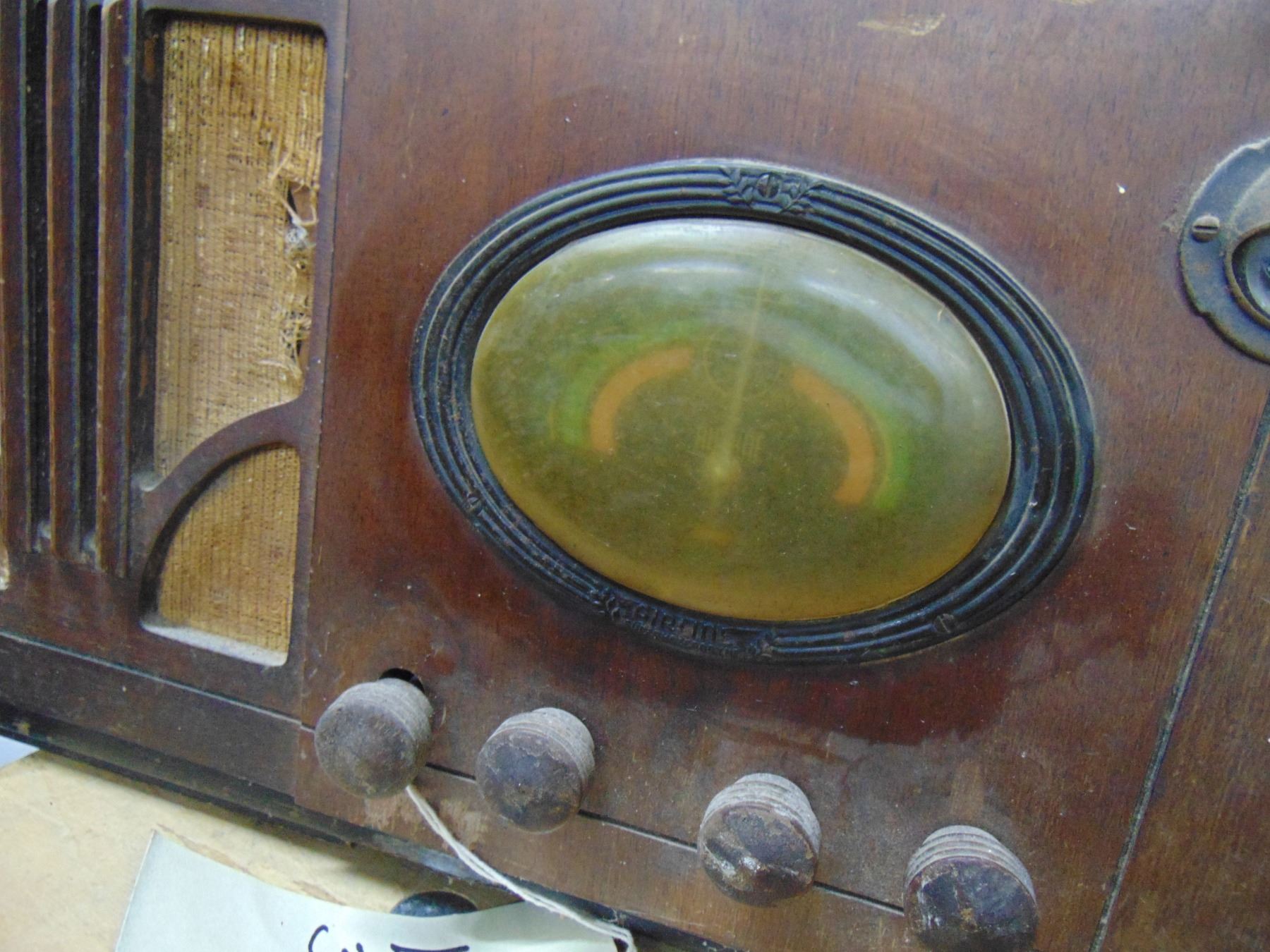 Montgomery Ward wood table set; oval dial; good condition; tuning eye; circa 1930's