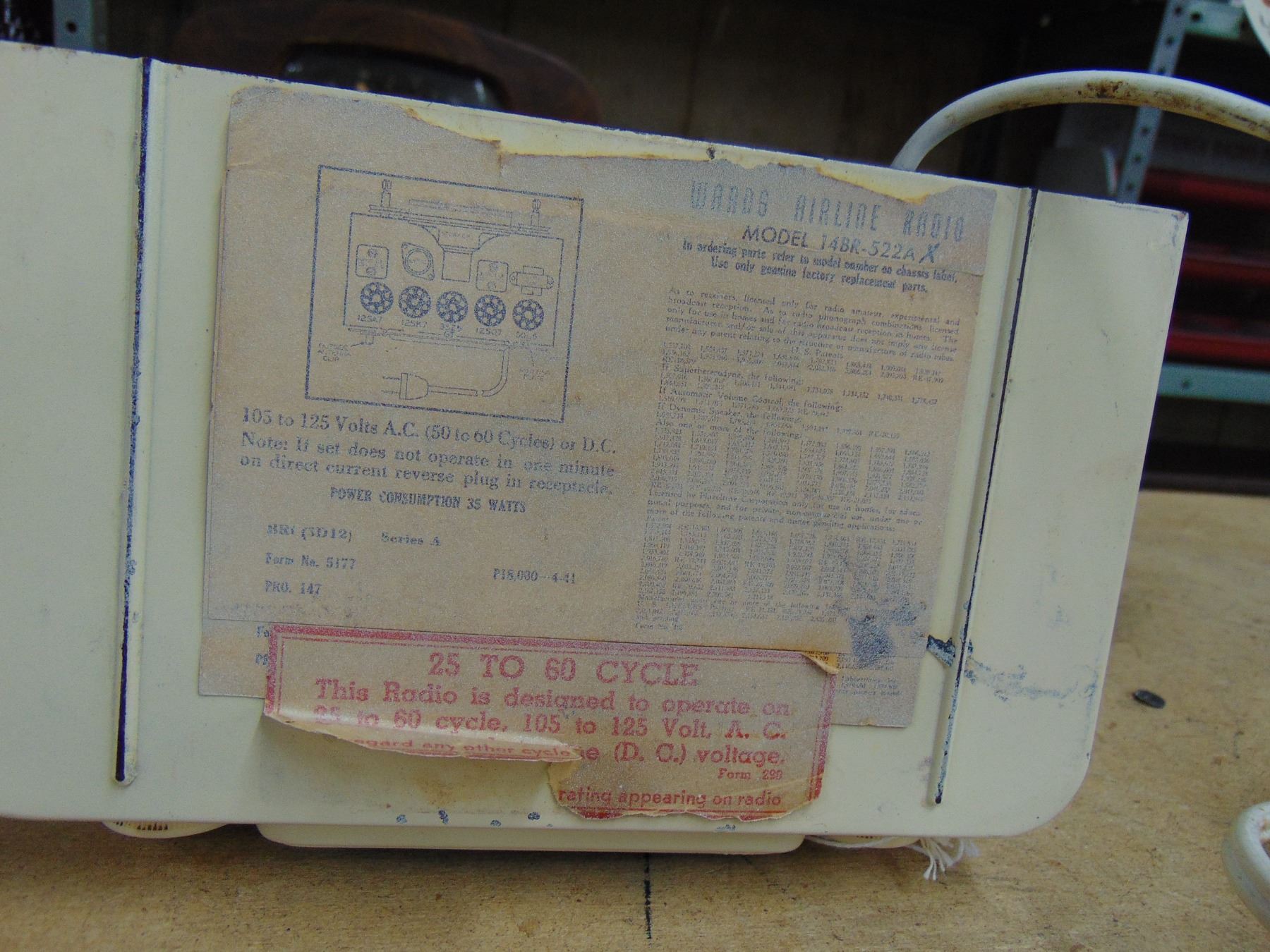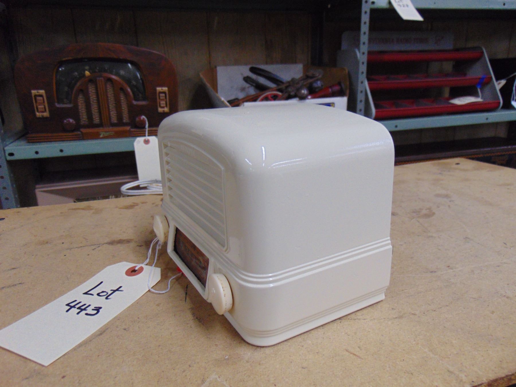 White bakelite table set; model 14BR-522A; works; no cracks