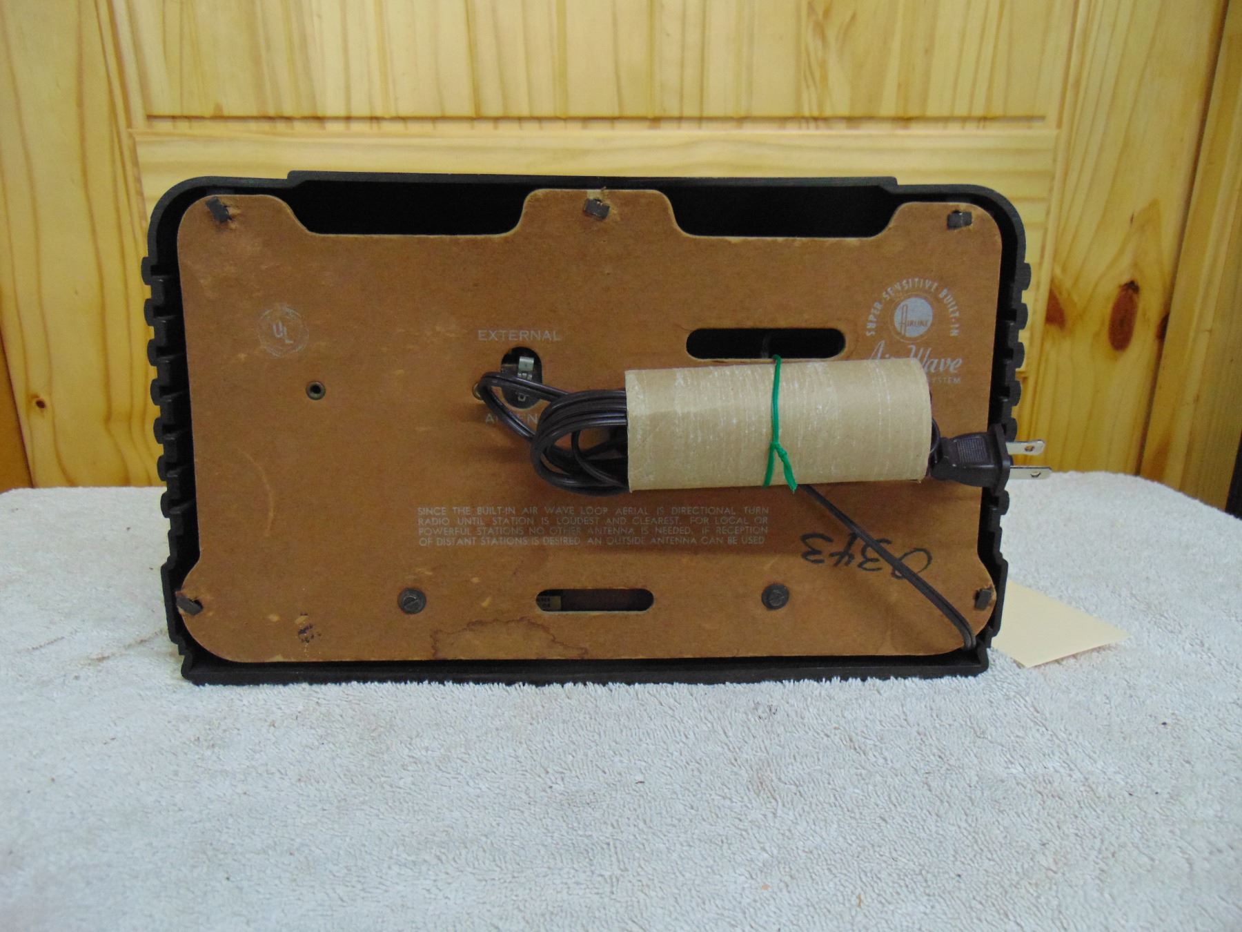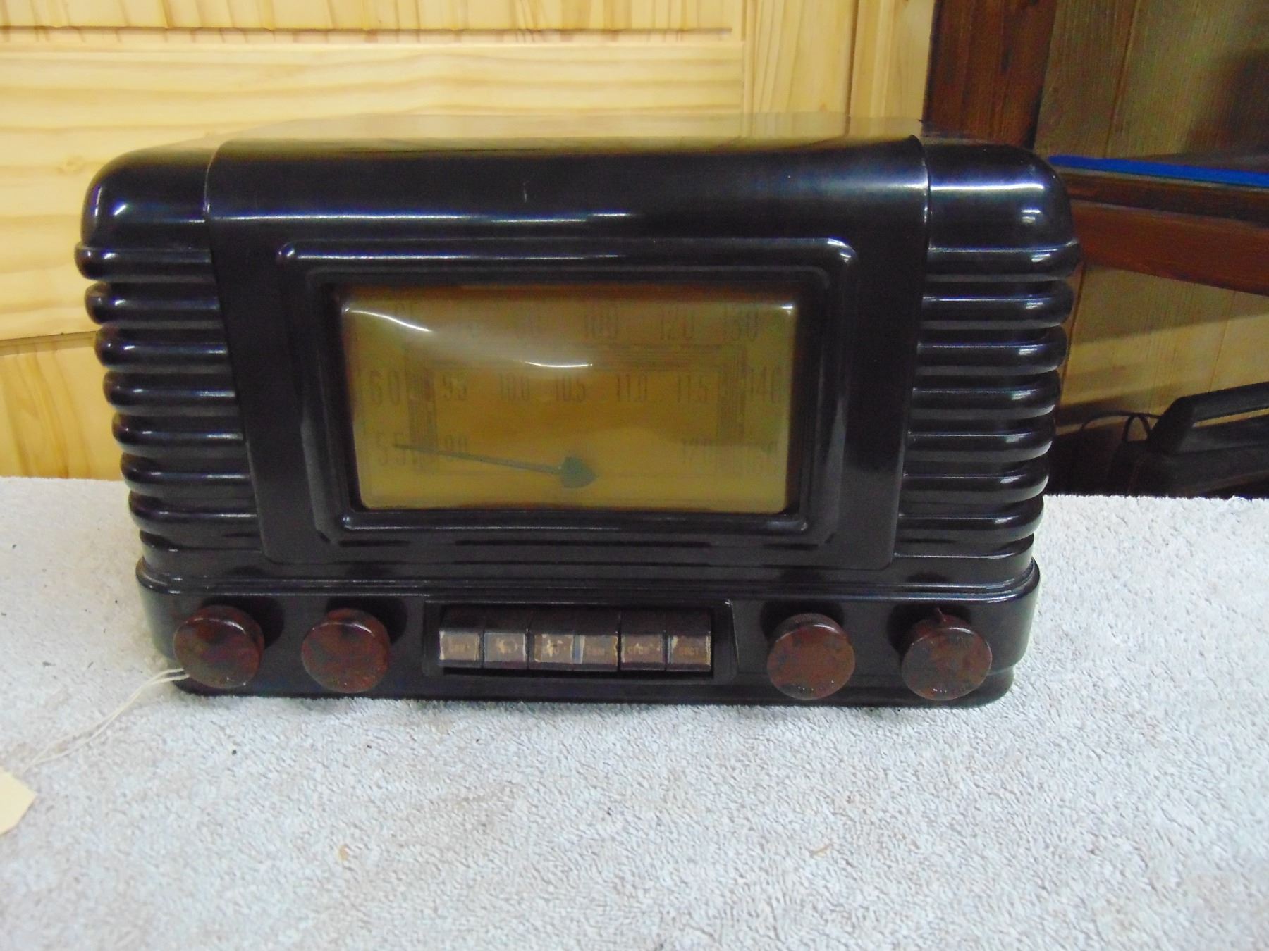 Black bakelite table set; model 14BR-734A; works; no cracks