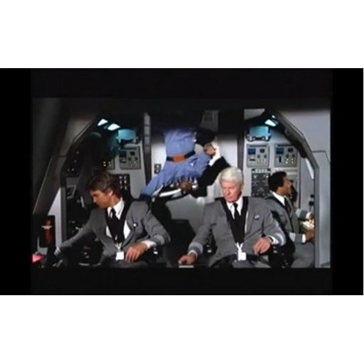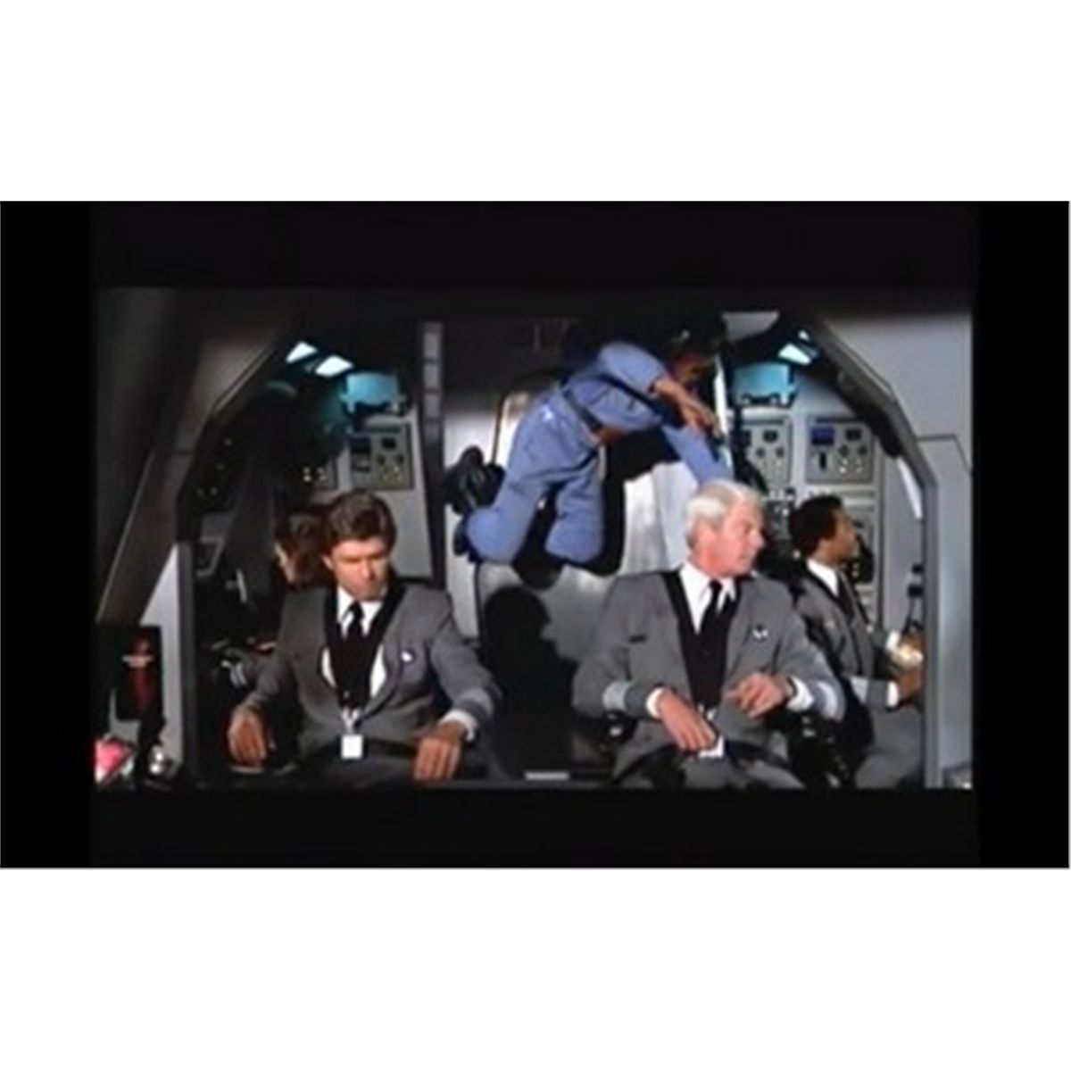 The garment was seen during the sequence in the cockpit of the space shuttle when the pilots of the space shuttle prepare the craft for takeoff. A member of the cleaning crew enters and begins vacuuming while listening to the song "At The Carwash." As a visual joke, the shuttle pilots continue talking in the foreground while the cleaning crewmember slowly begins to float due to the zero gravity.