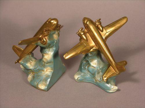 Airplane Book Ends, K and O Company. Painted metal with great patina. Excellent condition. 5 1/2 inches tall.