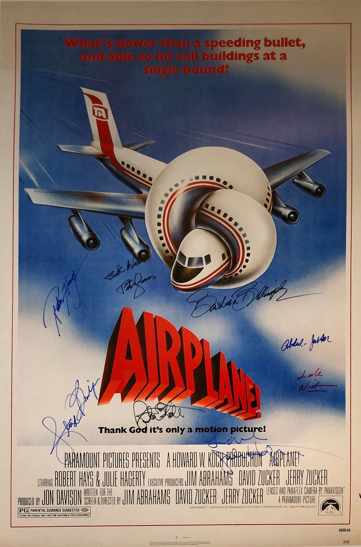 Robert Hays, Julie Hagerty, Kareem Abdul Jabbar, Leslie Nielsen, Lloyd Bridges, Barbara Billingsley, Robert Stack, Peter Graves
