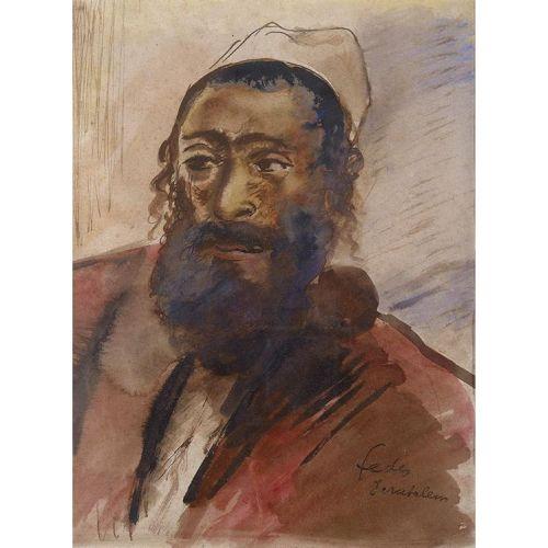 Aizik (Adolph) Feder<BR>Russian and French painting<BR>1887 - 1943<BR>Portrait of a Man<BR>Watercolor<BR>35x26 cm<BR>Signed and inscribed Jerusalem.