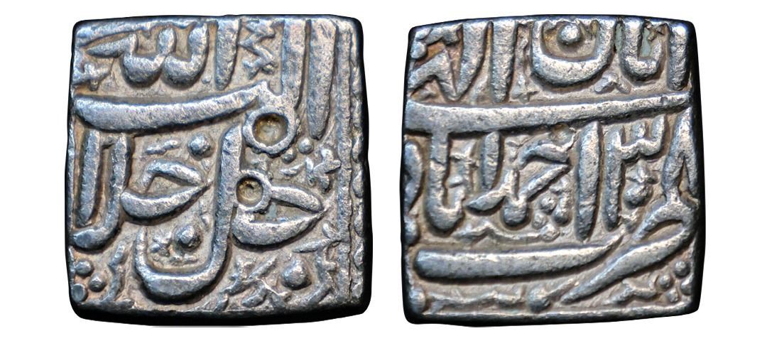 Akbar (1556-1605 AD), Silver Square Rupee, 11.40g