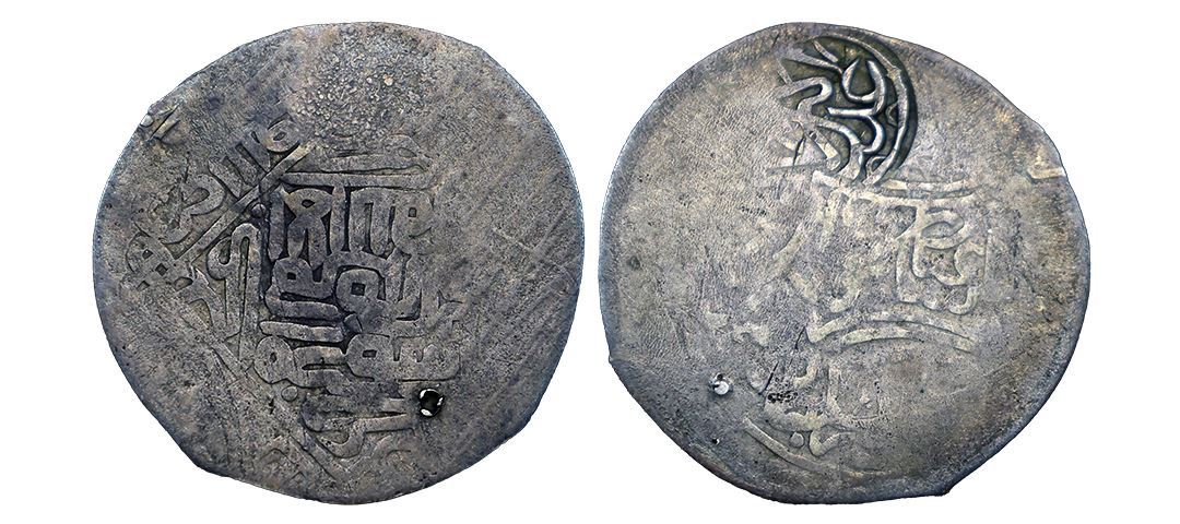 Akbar (AH 963-1014, 1556-1605 AD), Silver Countermark Shahrukhi, 4.56 gms, Countermark "Adl-e-akbar, countermarked on Shahrukhi of Iskandar Bahadur Khan Balkh Mint of Shayabanids Dynasty, Adl-e-akbar Sharukhis are much rarer than adl-e-Kabul types, very fine with a prominent countermark, very rare.