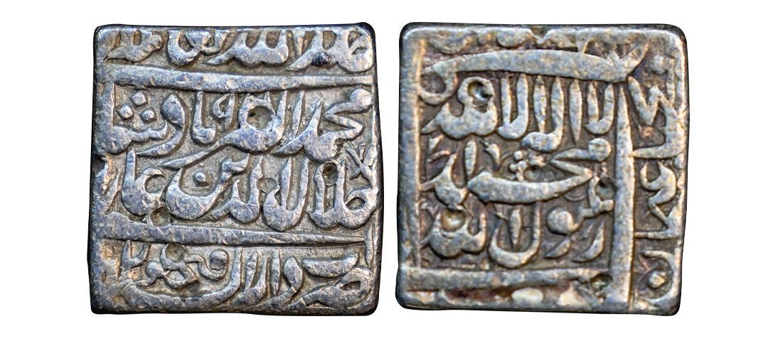 Akbar (AH 963-1014, 1556-1605 AD), Silver Square Rupee, 11.18 gms, Dar-us-Sultanate Fathpur Mint, KM # 82.2, very fine, very scarce.