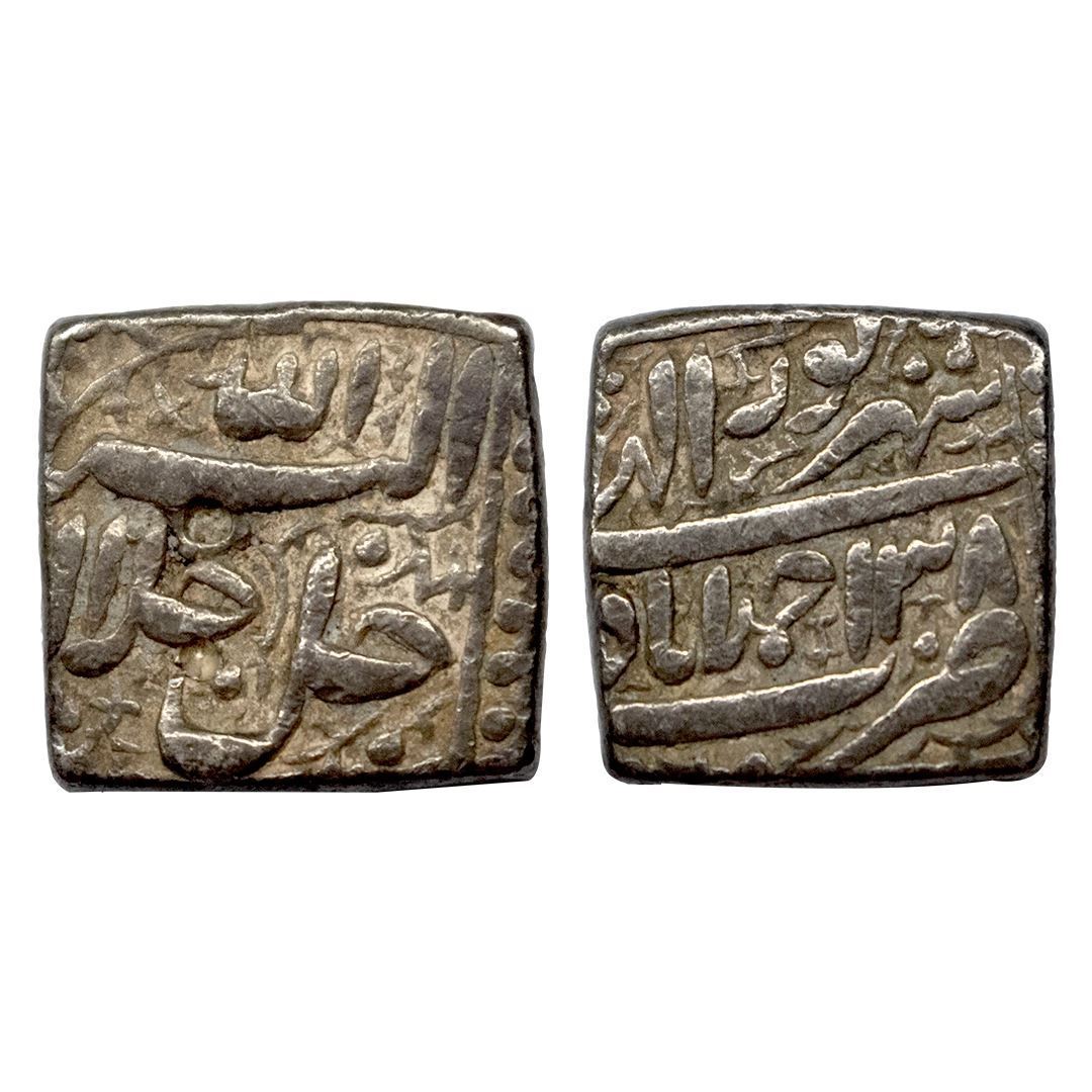 Akbar, Ahmedabad mint, Silver, Square Rupee, Allahu Akbar type, Ilahi 38, Shahrewar Month. Very Fine, Scarce.
