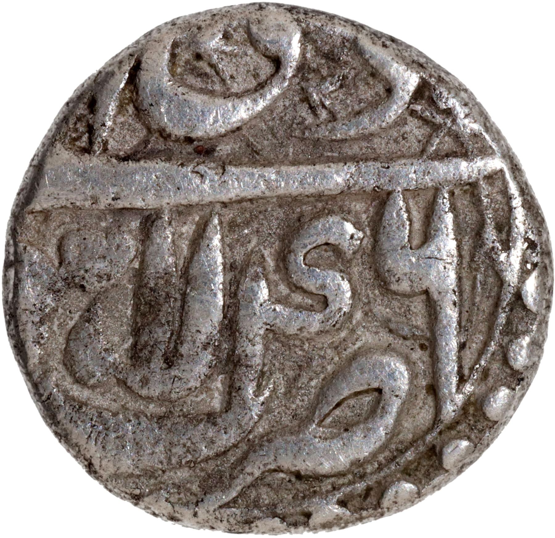 Akbar (AH 963-1014 /1556-1605 AD), Lahore Mint, Silver ½ Rupee, Elahi 46, Month Di (Capricorn), Obv: Arabic legend “Jalla Jalalahu Allahu Akbar”, Rev: Persian legend month "Di" at the top, "zarb Lahore" with "Elahi 46" at the bottom, 5.40g, 16.78mm, (KM # 66.3), test marks, about very fine, Rare.
