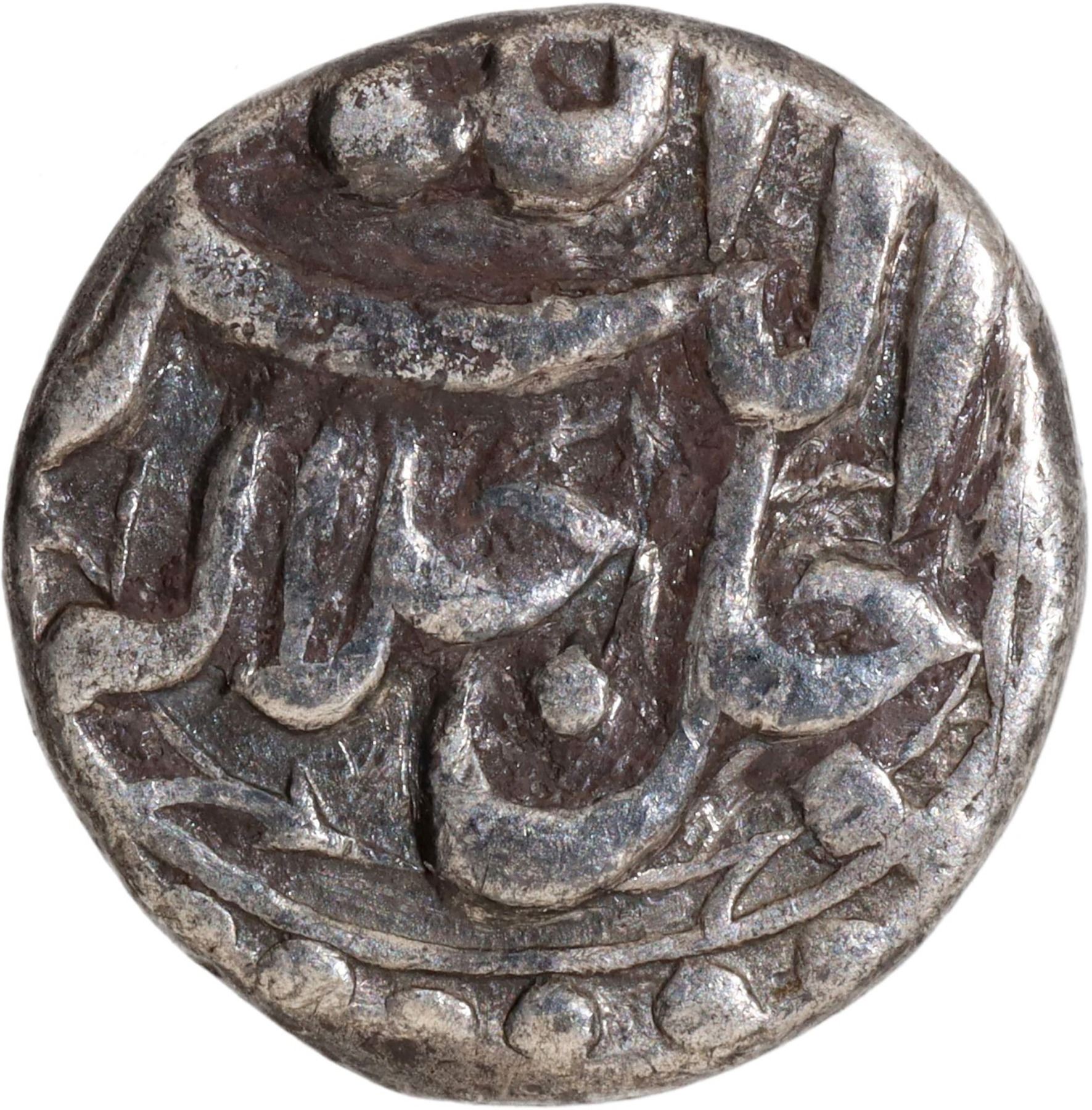 Akbar (AH 963-1014 /1556-1605 AD), Lahore Mint, Silver ¼ Rupee, Elahi 42 /3, Month Aban (Scorpio), Obv: Arabic legend "Jalla Jalalahu Allahu Akbar", Rev: Persian legend month "Aban" at the top, "zarb Lahore, Elahi 42 /3" at the bottom within a dotted border, 2.64g, 14.45mm (KM # 58.2), no test mark, about very fine, Rare.