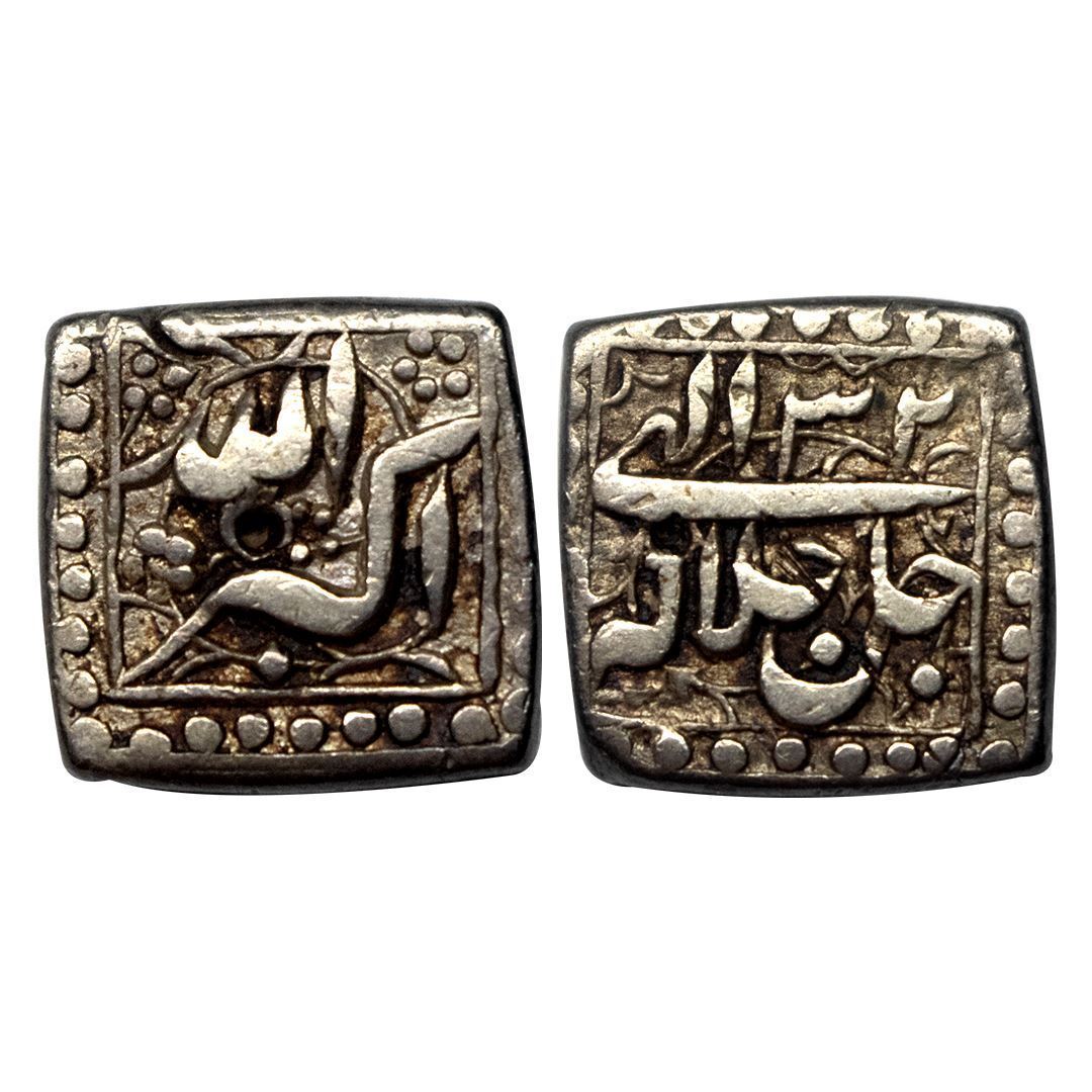 Akbar, Mintless, Silver, Square ½ Rupee, Allahu Akbar type, Ilahi 32,