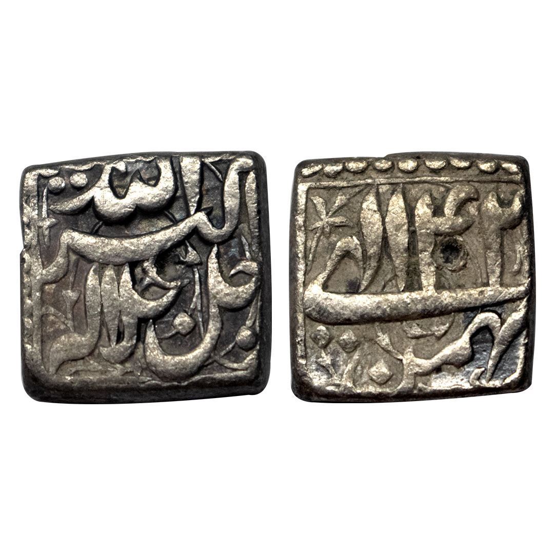 Akbar, Mintless, Silver, Square Rupee, Allahu Akbar type, Ilahi 42, Bahman Month.