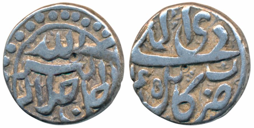 Akbar, Silver ½ Rupee, Kabul Mint, Ilahi type, Month Di, Year 45 (KM 66.2). Very Fine+, Scarce.
