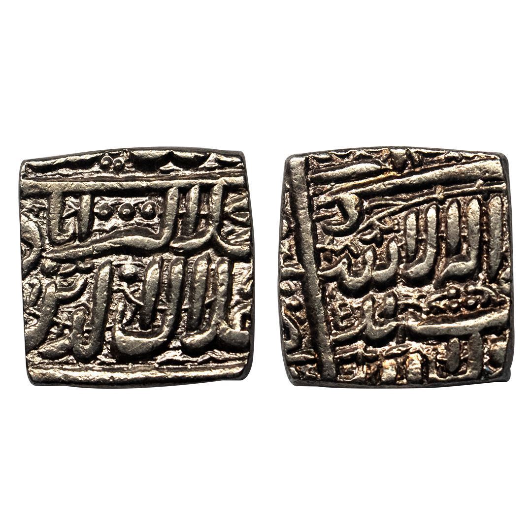 Akbar, Silver Square Rupee Mintless, Kalima type, AH 1000.