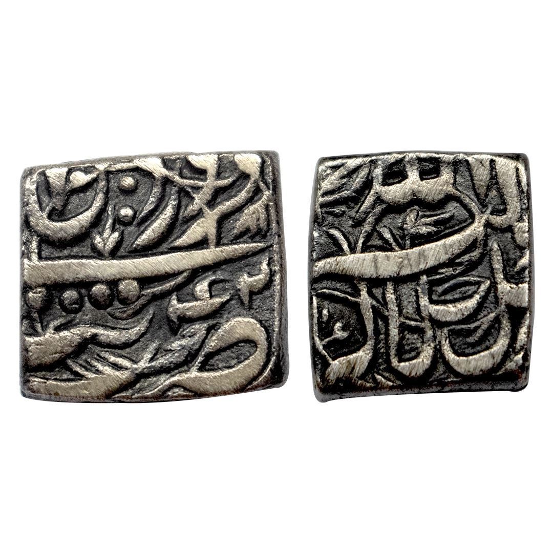 Akbar, Tatta mint, Silver, Square Rupee, Allahu Akbar type, Ilahi 42, Farwardin Month.