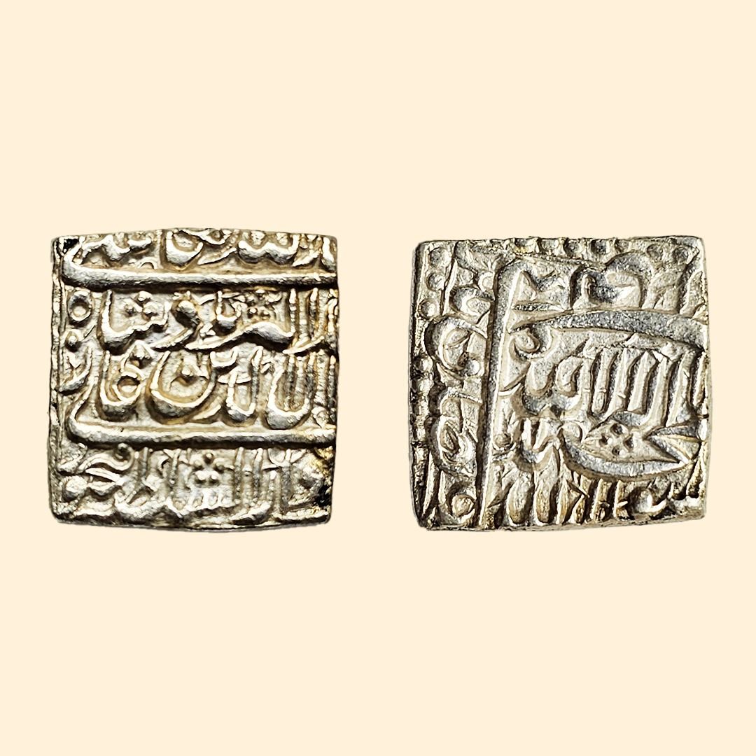 Akbar (AH 963-1014 / 1556-1605 AD), Silver Square Rupee, 11.02gms, Darul-Sultanate Fathpur Mint, Kalima on obv, ruler name with mint name on