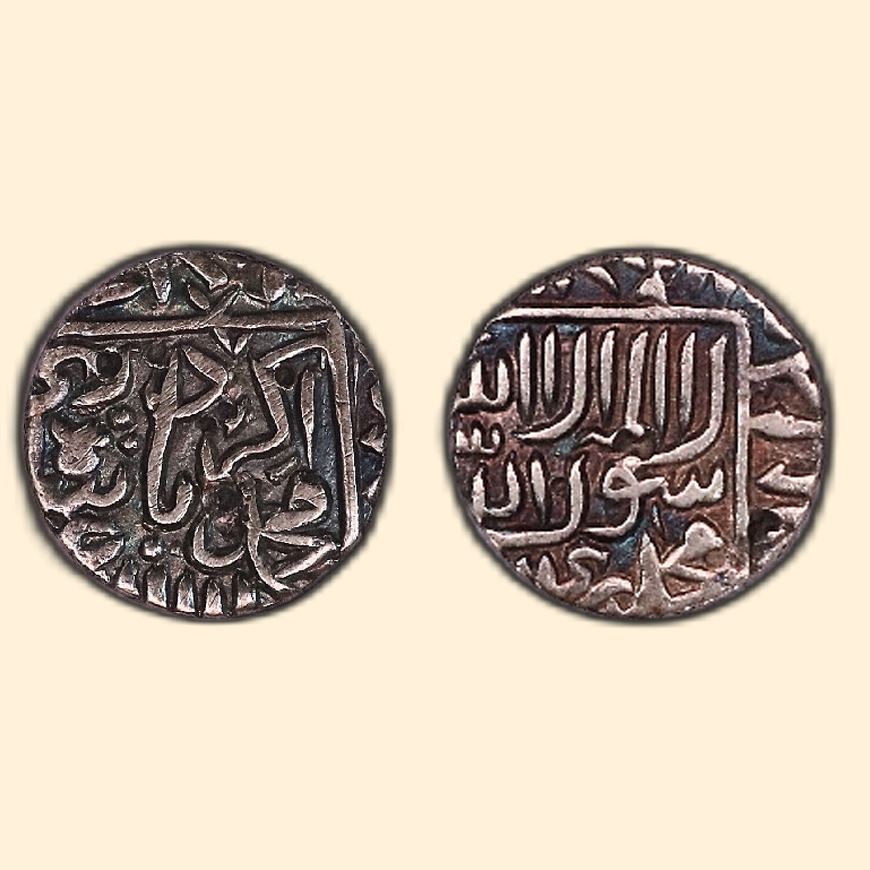 Mughals, Akbar (AH 963-1014 / 1556-1605 AD), Silver ½ Rupee, 5.60gms, Mint off flan, Kalima type, both sides inscription within square area.