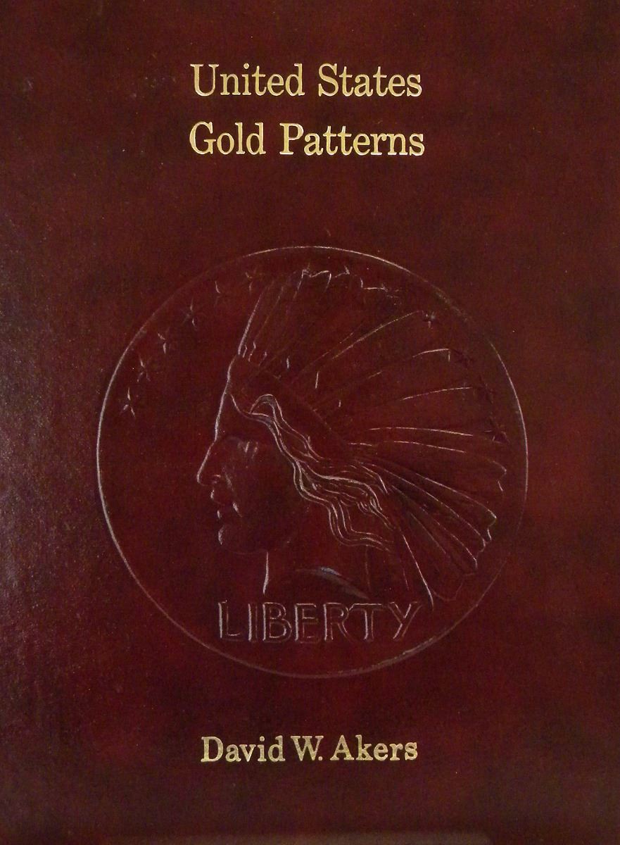 Akers, David W. UNITED STATES GOLD PATTERNS: A PHOTOGRAPHIC STUDY OF THE GOLD PATTERNS STRUCK AT THE UNITED STATES MINT FROM 1836 TO 1907. Racine: Western Publishing, 1975. 4to, original maroon leatherette stamped in gilt and blind; all page edges gilt. (2), 115, (1) pages; illustrated throughout, often in color. Signed by the author on the front blank leaf recto; inscribed and signed by Dr. John Wilkison to his son on the flyleaf verso. Near fine. See catalogue for full description.