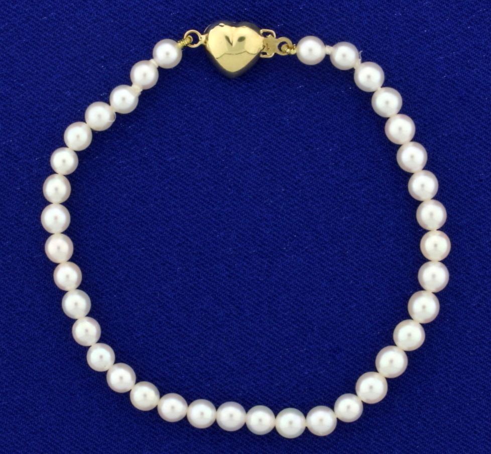 In 14k yellow gold. Containing thirty six 4mm high quality pearls with excellent color and luster. 7" long.