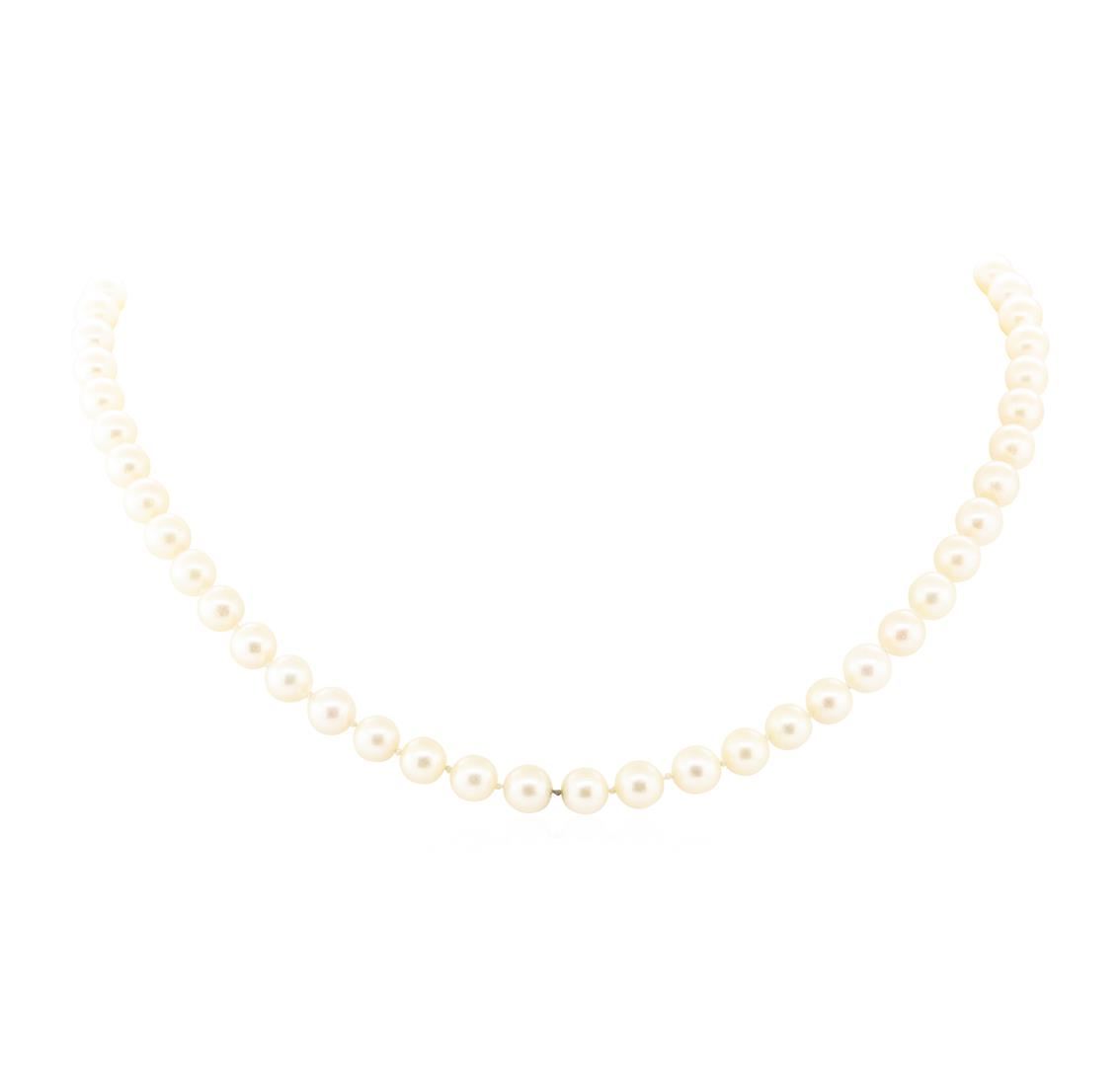 One akoya cultured pearl necklace measuring approximately nineteen inches featuring: akoya cultured pearls measuring approximately 7.5mm and 14KT yellow gold weighing 2.0 grams with a total weight of 36.4 grams.