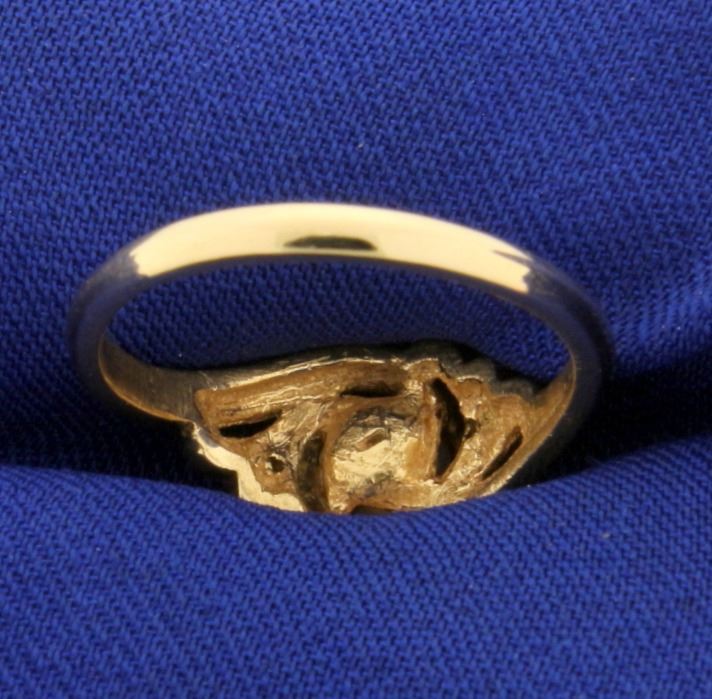 In 14K Yellow Gold. Contains a 5mmAkoya Pearl with great color and luster. Also contains two high quality .01ct Diamonds, SI clarity/H color. Size 8 1/2. 3.6g