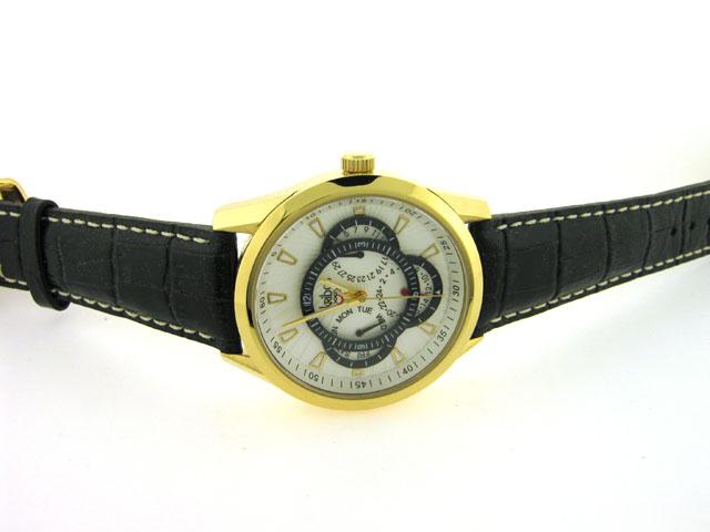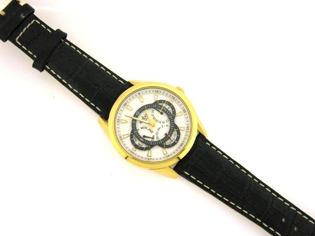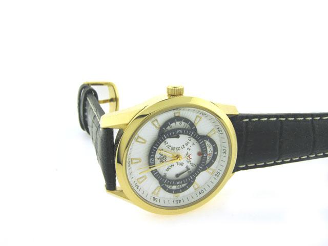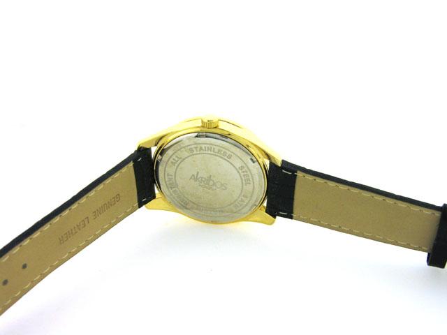 This is an Akribox XXIV Watch with the following features: All stainless steel; leather band; and Water resistant.