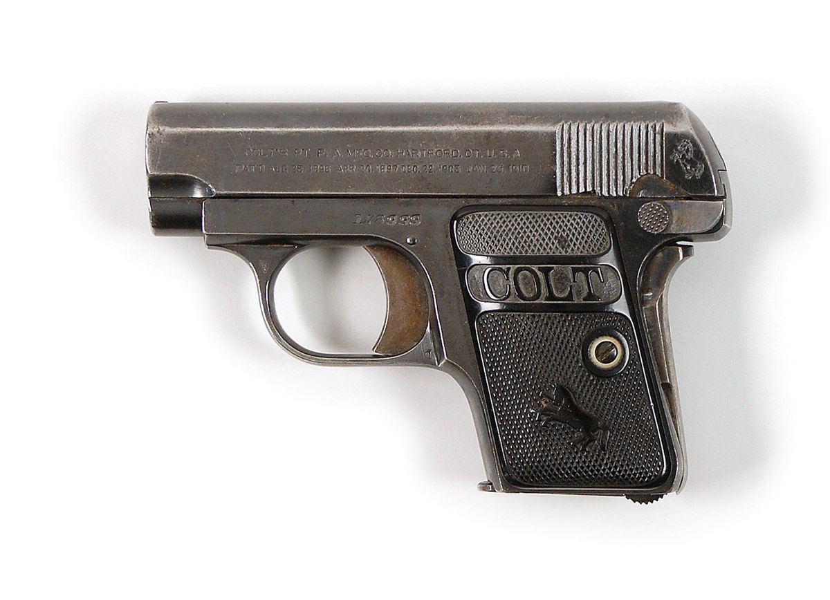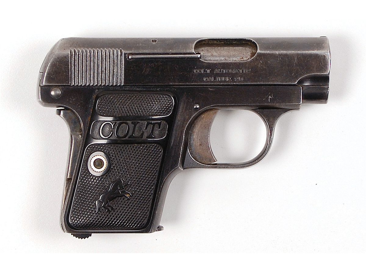 American organized crime boss (1899–1947), who, through his charisma, political savvy, and sheer ruthless ambition, emerged as the most powerful and influential criminal figure of the Prohibition Era. A Colt Model 1908 Vest Pocket Semi-auto pistol owned by Al Capone. #148999, cal. .25 ACP, 2 1/8? barrel. The pistol retains about 70% factory blue with fine condition checkered black hard rubber factory grips. The mechanics are fine, all factory lettering is clear, and a proper two-tone magazine is included.