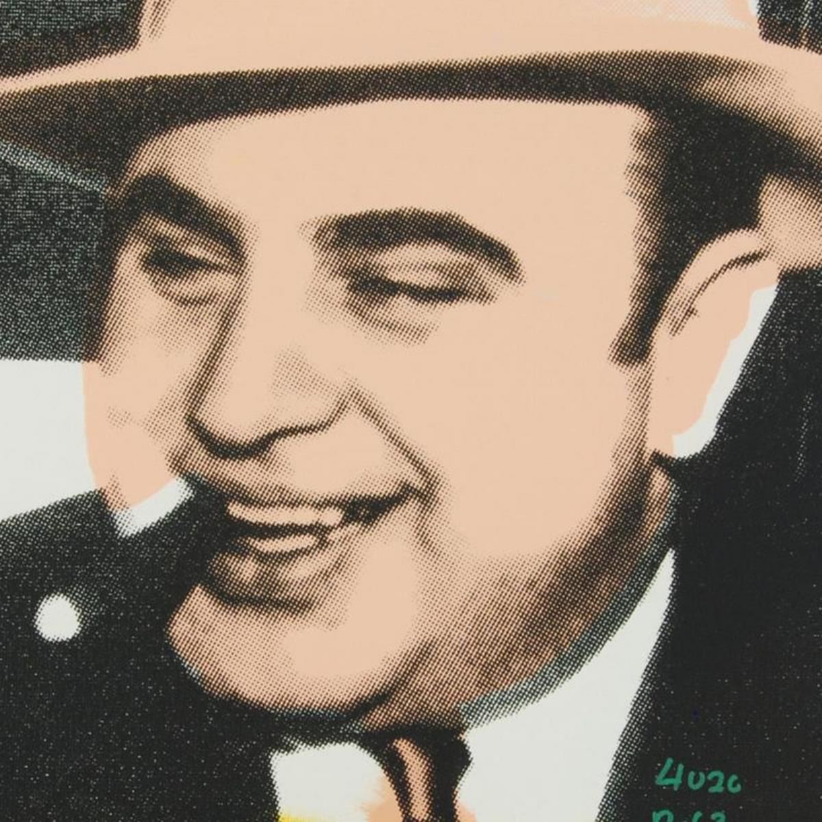 "Al Capone" is a one-of-a-kind hand-pulled silkscreen and mixed media painting on canvas by Ringo. This piece is hand signed by the artist and comes from the Andy Warhol Legacy Series. Includes Certificate of Authenticity. Due to the nature of the canvas, these pieces will need to be mounted for framing. Measures approx. 16" x 16" (image).