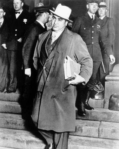 Alphonse Gabriel Capone, sometimes known by the nickname "Scarface", was an American gangster and businessman who attained notoriety during the Prohibition era as the co-founder and boss of the Chicago Outfit. His seven-year reign as a crime boss ended when he went to prison at the age of 33.