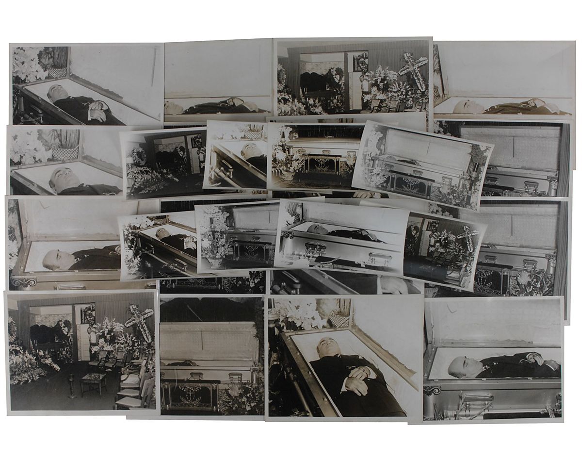 Other items in the collection include 23 vintage glossy photos, both 10 x 8 and 8 x 5, of Capone lying in his $2000 bronze casket at the Philbrick Funeral Home, surrounded by large floral displays, also included are the original negatives; medical records of Capone’s final week, detailing medications given, meals, and general observations; and copious amounts of correspondence, much of it to Dr. Phillips. In overall fine condition.