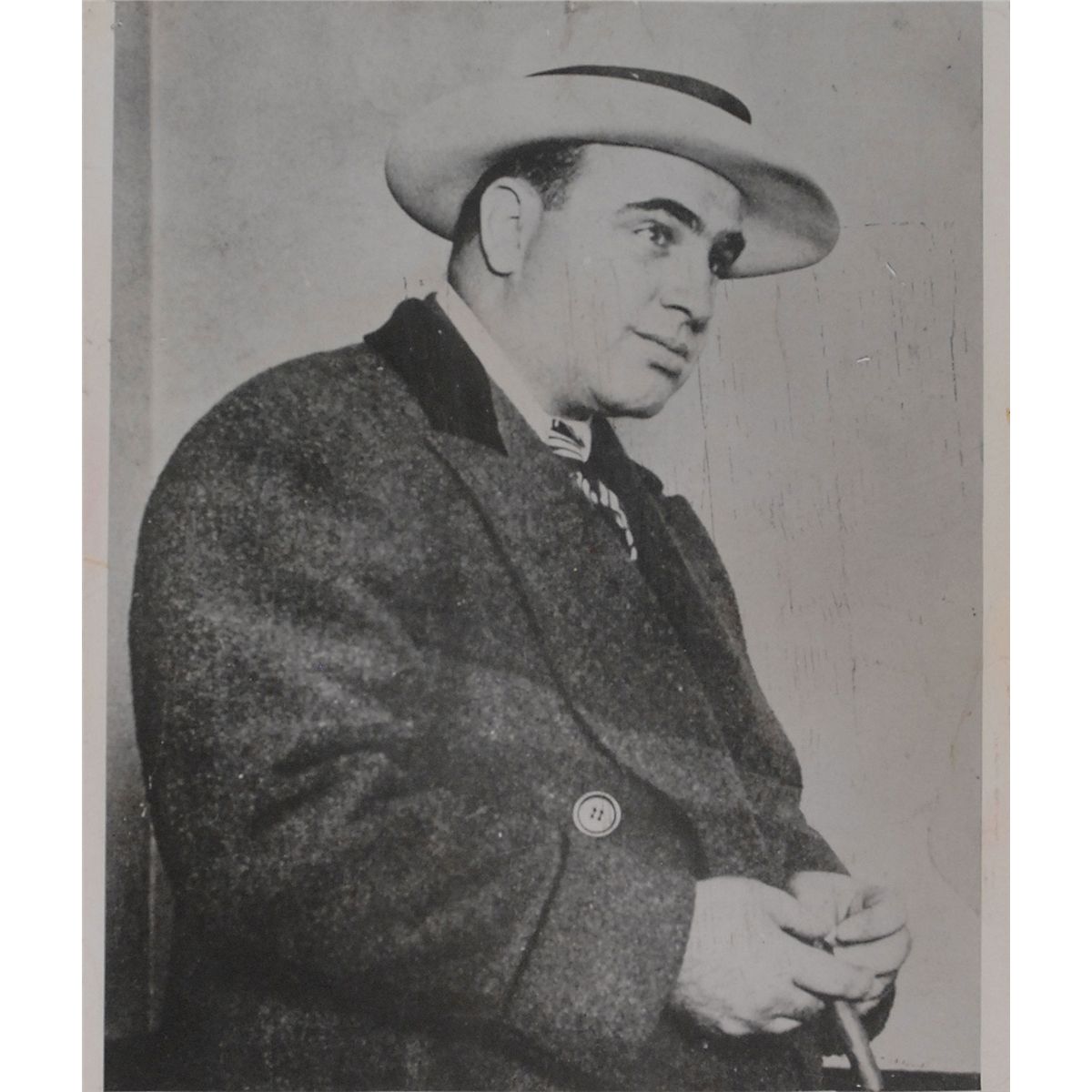 Original glossy 8 x 9.5 press photo of Capone in his prime, bearing an affixed caption and 1971 date stamp to reverse, as well as a large “Deceased” stamp over the caption. Scattered surface marks and creases, and normal news use and wear, otherwise fine condition.