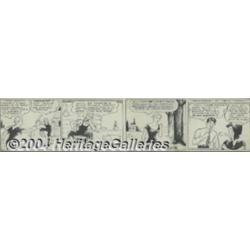 <B>Al Capp - Li'l Abner Daily Comic Strip Original Art, dated 10-12-34 (United Features Syndicate, 1934).</B></I> At first glance, these characters don't look like the familiar denizens of Dogpatch we all know so well! They have some future development to go, to be sure -- check out Pappy Yokum, who looks a good twelve inches taller than we are used to. The biggest difference is in Daisy Mae, who looks very little like the famous character she would become. Al Capp created this classic "hillbilly" strip in 1934 after a stint ghosting the <I>Joe Palooka</B></I> strip for Ham Fisher. It was an instant success, running for over forty years. Here's a chance to own a beautiful example from the strip's first year, featuring all of the star characters. The image area measures approximately 22" x 5"; panel three has a pasted-over correction that has a few rubber-cement stains, otherwise this page is in Excellent condition. <BR><BR><B>Important notice:</B> Heritage usually auctions material at the rate of 200-250 lots per hour. On some occasions eBay Live bid software or the Internet may not be able to keep up with the pace of the auction. We recommend placing a realistic absentee bid now as insurance to avoid disappointment. Occasionally the auctioneer may eliminate or reject an eBay Live bid, and the auctioneer may also reopen a lot after the close of the eBay live bidding (usually because we missed an audience bid), and may reject your bid even if it shows you as the winning bidder. By bidding via eBay Live, you agree that Heritage may award the lot to another bidder at its sole discretion under the circumstances described above or any other reasonable circumstances. Since eBay bids are not shown to us until we open the lot on the floor, we treat those bids just like floor bids. In most cases the floor responds before the eBay bid is presented to us, due to Internet lag time, so for consistency we have made it a policy that floor bids are always considered first over tie eBay live bids. Also please note that all Heritage lots purchased through eBay Live carry a 20% Buyer's Premium. Please make sure you read the Terms and Conditions before you bid. </span></font></tr></table></td></tr></table>