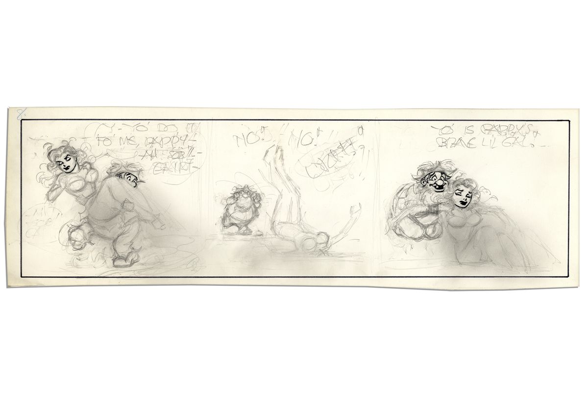 Al Capp ''Li'l Abner'' Unfinished Hand-Drawn Comic Strip -- Featuring Daisy Mae -- Measures 19.75'' x 6.25'' in Pencil & Ink -- Near Fine