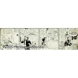 <B>Al Capp Studios - Li'l Abner Daily Comic Strip Original Art, dated 1-4-54 (United Feature Syndicate, 1954).</B></I> How much do a rich an' famous speshulist charge fo' a horn operation? That's the question in this <I>Li'l Abner</B></I> daily from 1954. The "speshulist" looks slighty familiar... could it be a sly parody of Al Capp himself? The art measures 6.25" x 22.25" and is gorgeously matted and in Excellent condition.