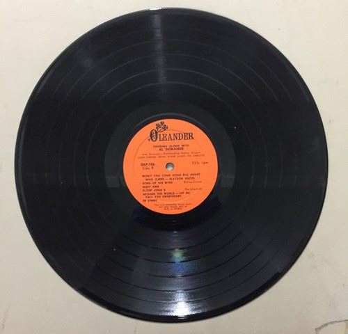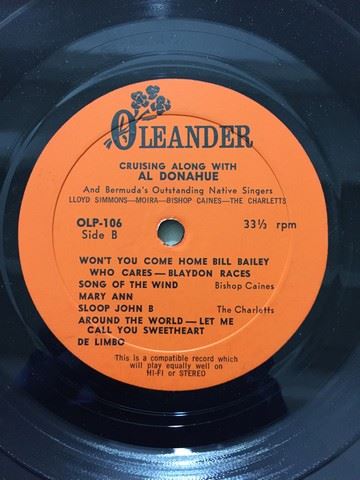 Al Donahue "Cruising Along with Al Donahue, The Furness Way" 12 songs between the 2 sides, songs include "Yellow Bird"; "Bermuda"; "Mary Ann"; etc., saxophone player autographs written on the back cover under "autographs", autograph from Al Donahue with a message stating "To Judy, Best Wishes", album cover shows two sailing cruise ships one cruise ship is the "Queen of Bermuda" and the other is "Ocean Monarch"