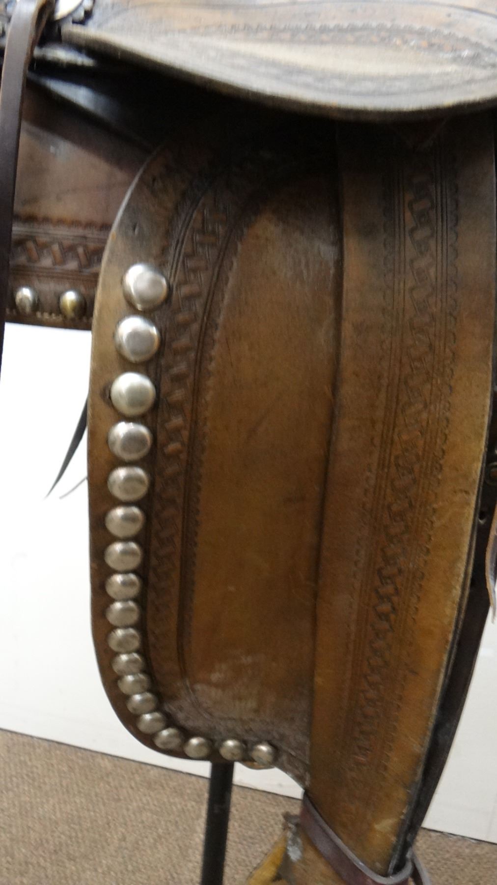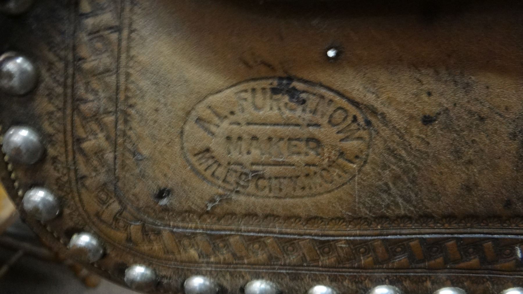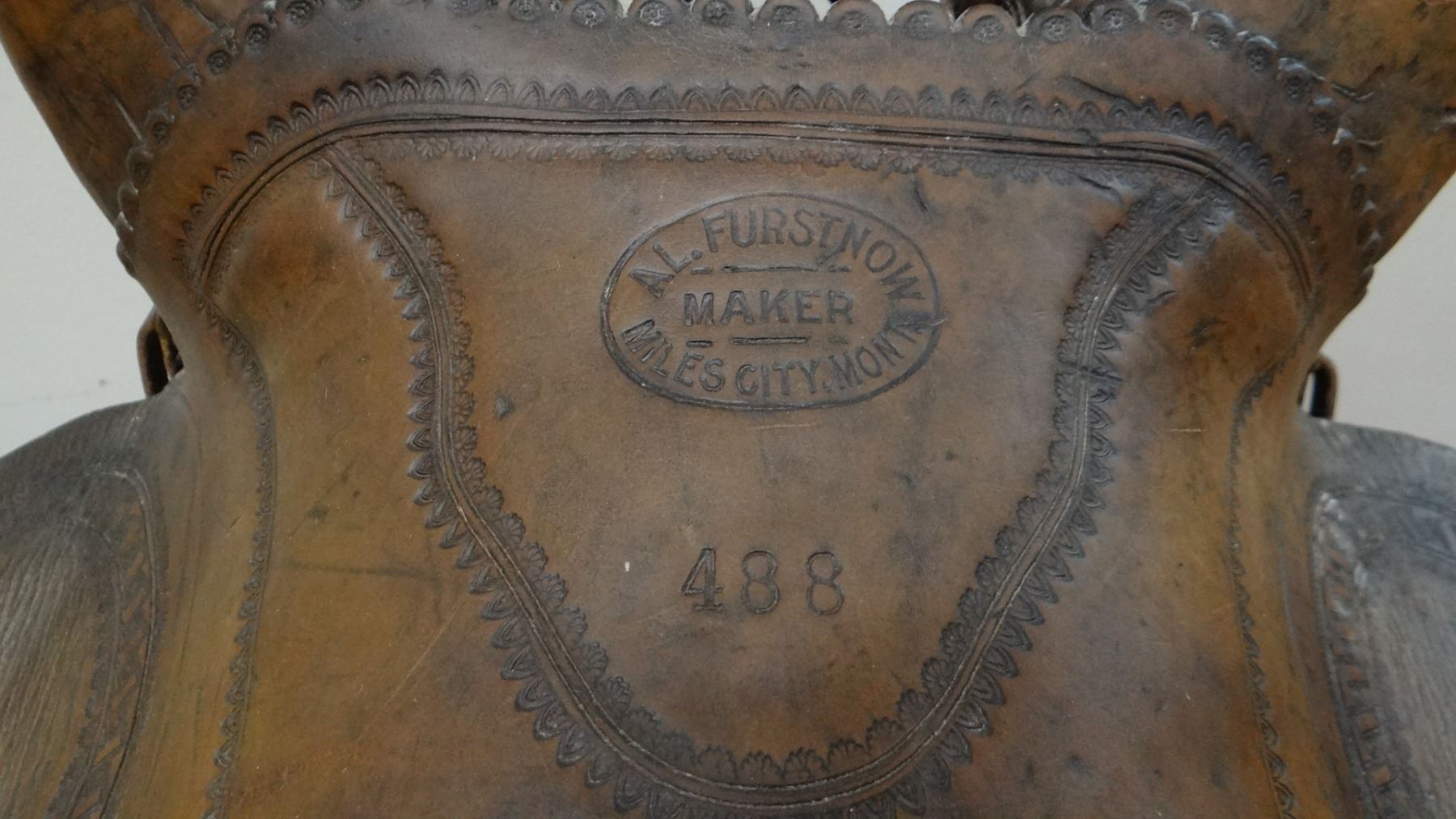 Al Furstnow 15" fancy border studded saddle, some restoration, sq. skirts, dble rigged
