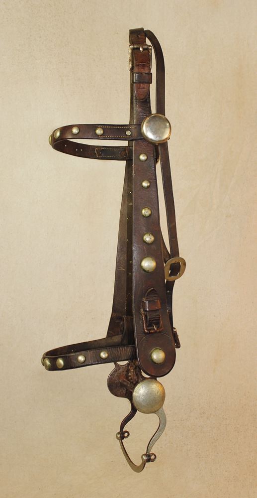 Exceedingly rare Furstnow wide cheek nickel spotted headstall with fantastic Crockett Frontier pattern half breed bit.